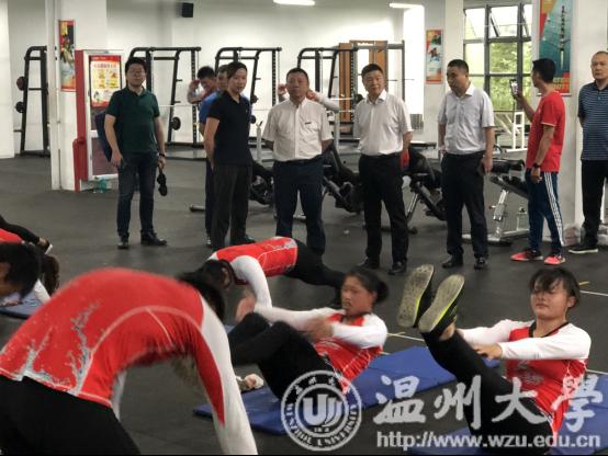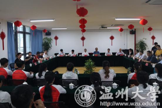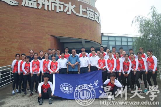 7月14日,校党委书记谢书华,中国龙舟协会副会长温州市龙舟协会会长原温州市副市长王成云,乐清市常委宣传部长范晓东、副部长洪蛮,温州市体育局党组成员张伟文,与校党校办、团委、体育学院负责人等来到位于乐清市清江镇的温州市水上运动中心,看望慰问在此封闭训练的即将代表浙江省参加全国第二届青年运动会的“小宝影院 龙舟队”。