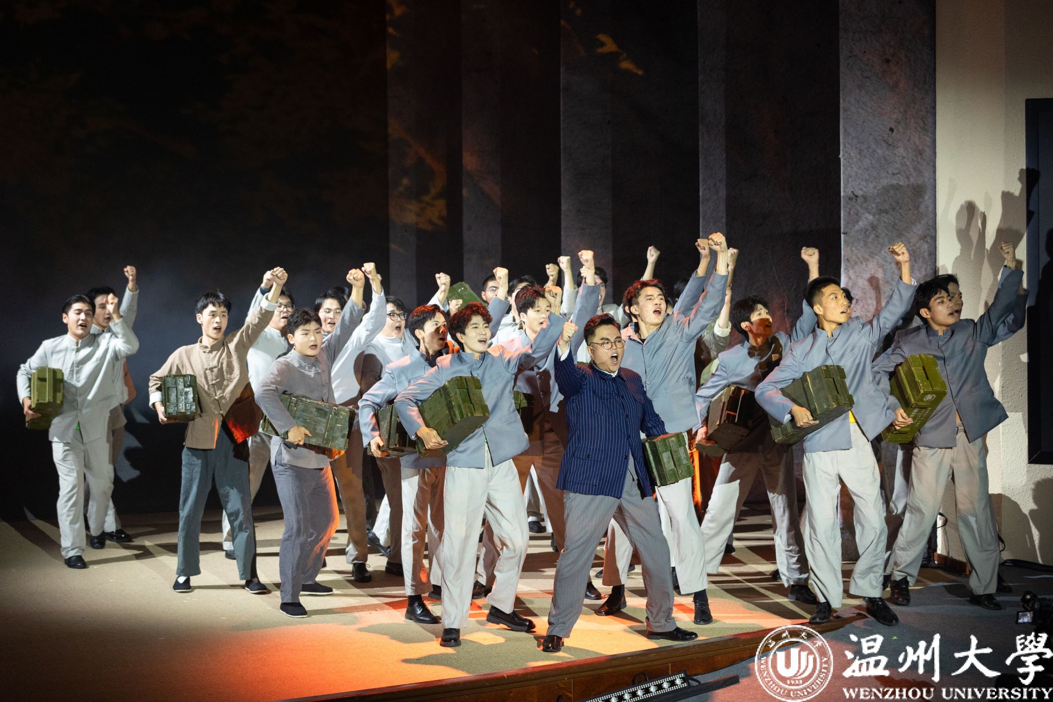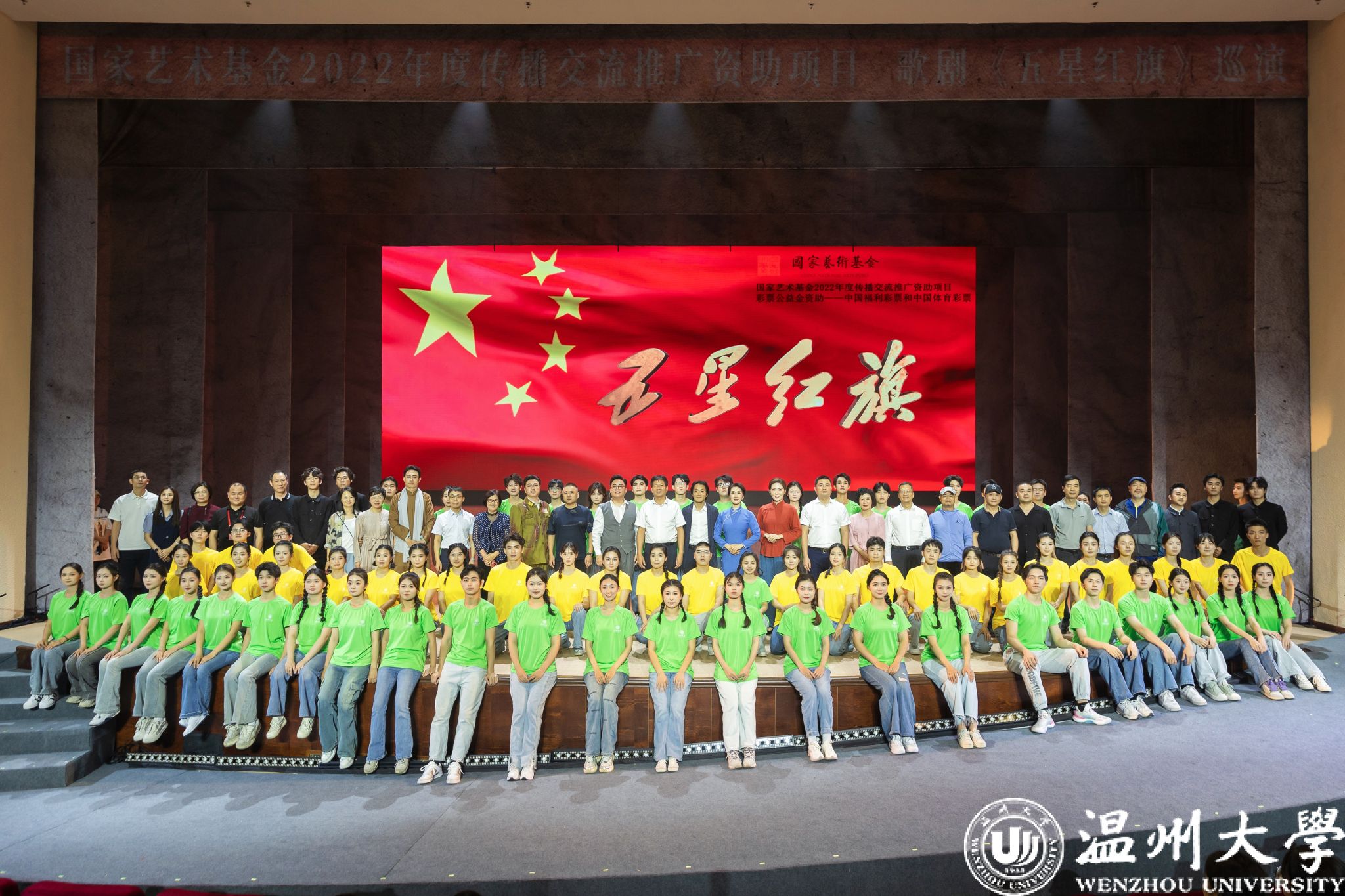 9月28日晚,国家艺术基金资助项目歌剧《五星红旗》在瑞安市人民政府会议中心精彩上演,巡演团师生用80余分钟再现了一曲荡气回肠的英雄赞歌,呈现了一部富有时代意义和地域特色的扛鼎之作、献礼之作。温州市委教育工委专职副书记、市教育局党委副书记张维凯、小宝影院 党委副书记庄兴忠、小宝影院 原党委副书记、教育发展基金会理事长牟德刚、小宝影院 党委委员、组织部部长夏春雨、中共瑞安市委常委、宣传部部长孙寒星、参加新时代艺术思政教育研讨会的专家学者及广大市民1500余人现场观看演出。