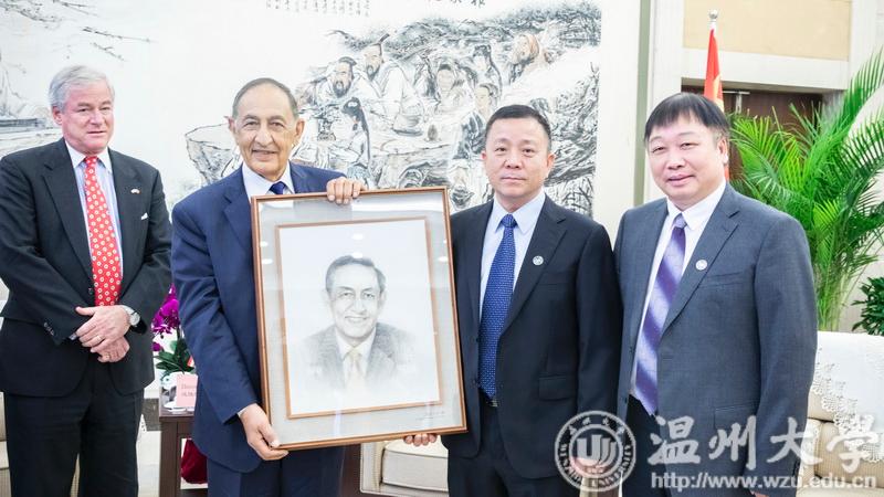 会后,谢树华将人像发绣作品赠予法拉希博士,作品由中国刺绣艺术大师、温州市发绣研究所所长孟永国先生精心绣制。