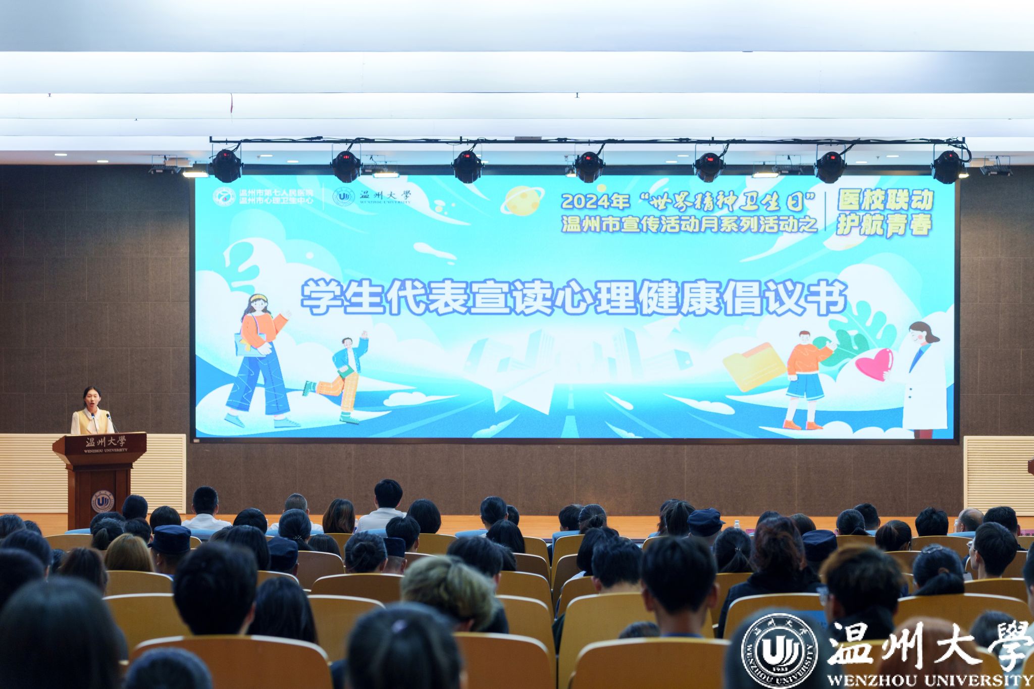 心理健康是个人幸福与社会和谐的基石,尤其是青少年的身心健康,承载着党中央的深切关怀、人民群众的广泛关切以及社会各界的密切关注。正值“10.10世界精神卫生日”,由温州市卫生健康委员会、温州市精神卫生工作办公室主办,小宝影院 、温州市第七人民医院联合承办的温大学子“温心热线”启用仪式暨小宝影院 第二十届心理健康教育活动月启动仪式在小宝影院 成功举行。