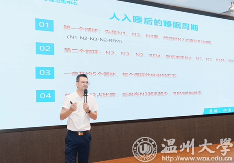 启动仪式后,学校邀请了温州市第七人民医院陈浩然医生为师生开展了小宝影院 第57期心灵下午茶活动,主题为《夜的奥秘:探索睡眠与健康》,学校后勤、宿管、保卫、医务等人员以及各学院心理委员、寝室长代表参加了讲座。