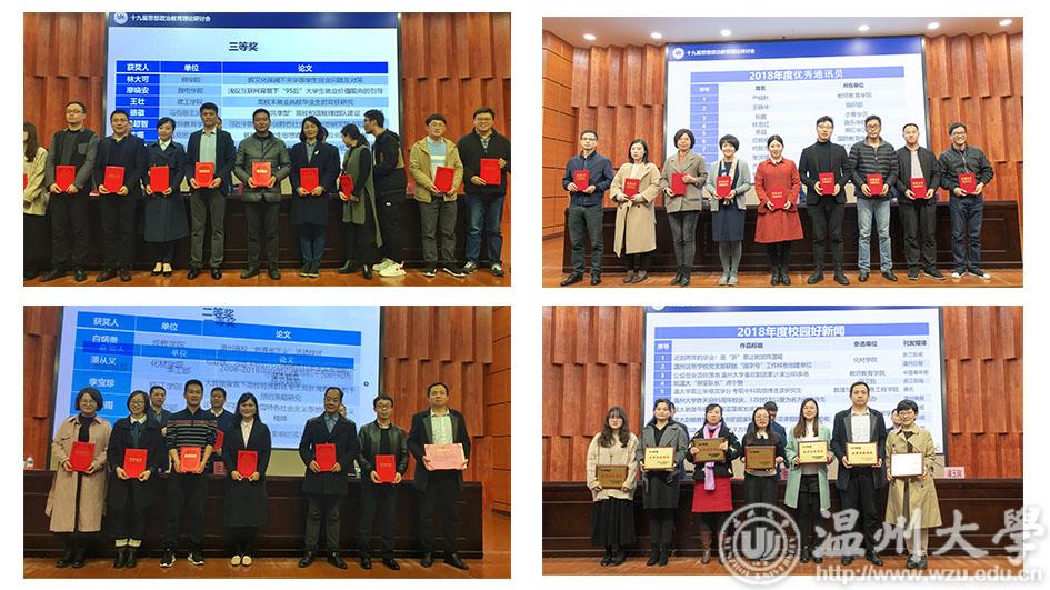 会上,潘玉驹宣布小宝影院 第十九届思想政治教育理论研讨会优秀思政论文和言论作品的获奖者、2018年度各类优秀新闻作品以及优秀新闻通讯员名单。会议为获奖者颁奖。
