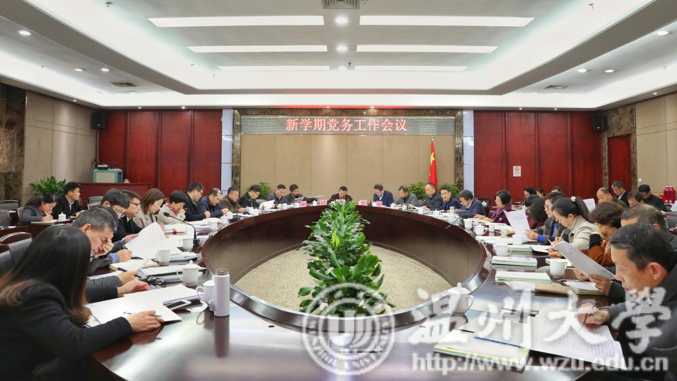 3月8日上午,校党委书记谢树华主持召开新学期党务工作会议,校领导牟德刚、庄兴忠、吴金法、潘玉驹,各党群部门负责人,各党总支(分党委)书记、副书记、保卫处负责人等参加会议。