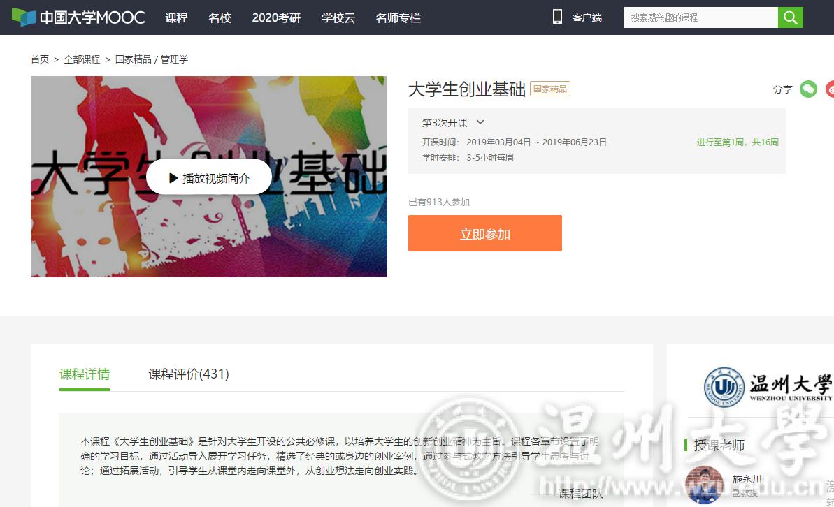 课程链接://www.icourse163.org/course/WZU-1002597030