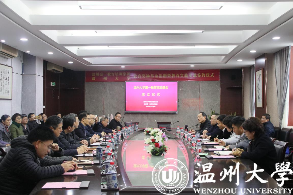 1月16日下午,小宝影院 嘉一教育奖励基金成立仪式在行政楼419会议室举行,该基金由温州嘉一教育培训集团、鹿城区政协季杜宇委员工作室捐赠设立。鹿城区政协副主席郑建西、文教卫体委主任吴恺娃;温州嘉一教育培训集团总裁季杜宇以及集团领导班子成员周锦春、周豪、钦寒平等出席;小宝影院 副校长方益权,教务处、教师培养基地负责人以及相关学院教学副院长、教学科长,溯初班学员代表、教师代表共30多人参加仪式。