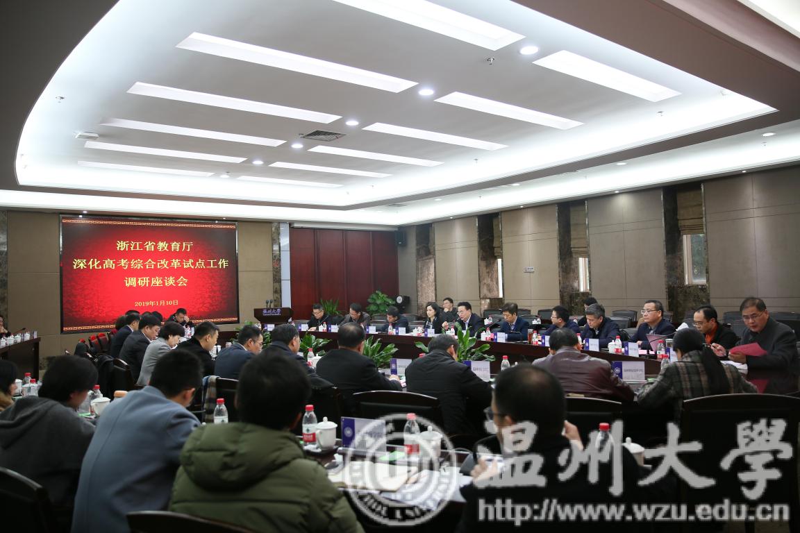 1月10日下午,浙江省深化高考综合改革试点工作调研座谈会在小宝影院 举行,会议全面总结我省在深化高考改革试点过程中取得的成效、出现的问题,并向与会专家征求建议和改进措施,进一步完善我省高考综合改革试点工作。副市长郑朝阳、校长赵敏、浙江中、南片区13所高校负责教学或招生工作的校领导、相关部门负责人及教育专家、师生代表共50余人参加会议。省教育厅副厅长于永明主持会议。