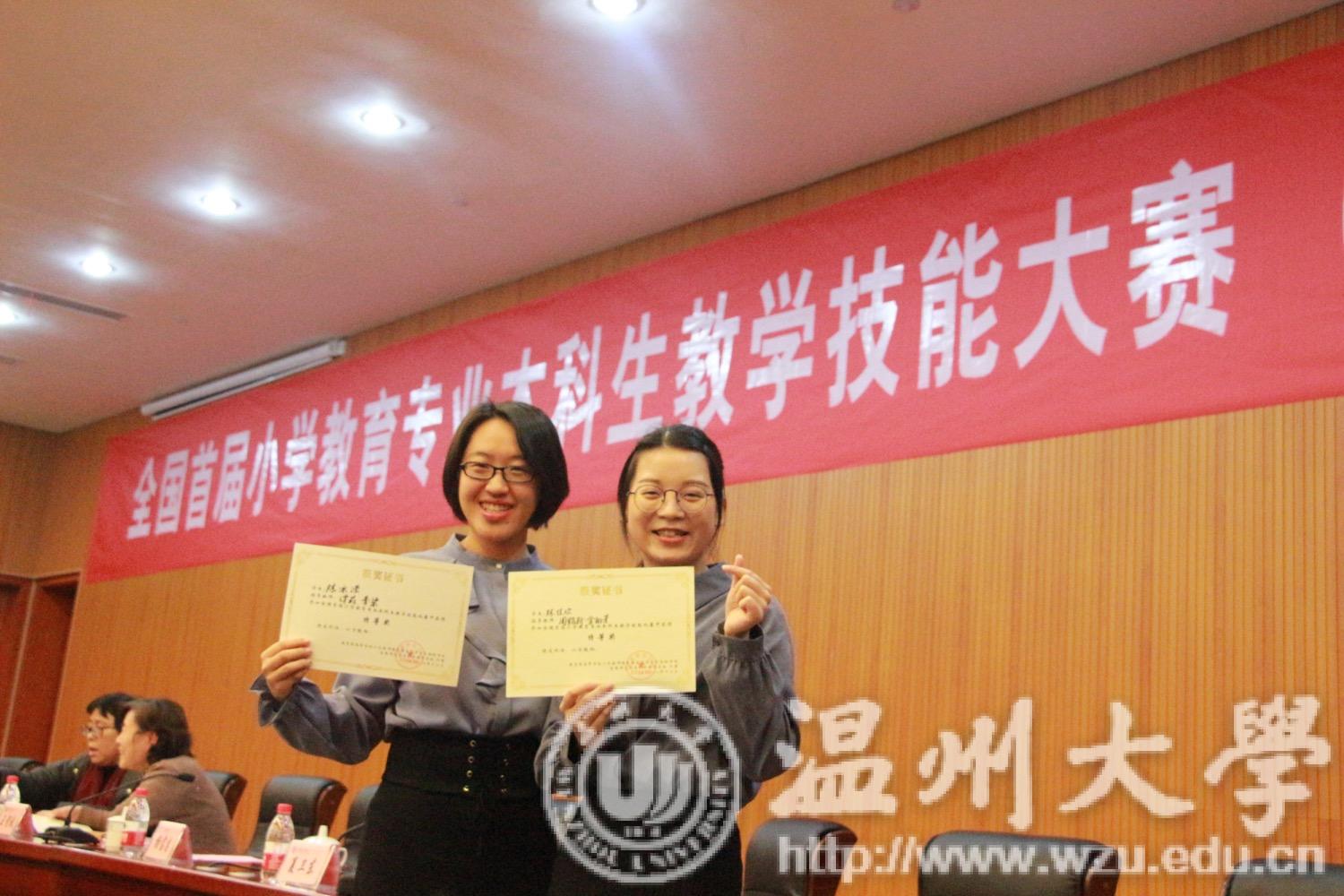 12月29日,由教育部高等学校小学教师培养教学指导委员会和中国高等教育学会教师教育分会小学教育委员会主办的全国首届小学教育专业本科生教学技能大赛(决赛)正式落下帷幕。小宝影院 小学教育专业2015级语文方向陈冰滢和数学方向陈佳欢同学在大赛中脱颖而出,双双荣获特等奖。
