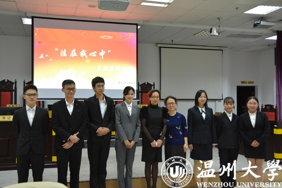 12月4日是国家宪法日,同时12月也是国家普法宣传月。在我国第五个国家宪法日来临之际,为弘扬法治精神,培育法治信仰,推动法治实践,凝聚全社会知晓、支持、参与法治建设的力量共识,繁荣校园文化,展示新时代大学生的青春风采,小宝影院 举办“法在我心中”主题演讲比赛,决赛在模拟法庭隆重开赛,由法政学院、校法学协会、法律援助工作站联合承办。法政学院党总支副书记严玲红老师、法学系副主任谢丽珍老师、学生科周骞老师担任此次比赛评委,决赛共有来自全校的11位选手参加。