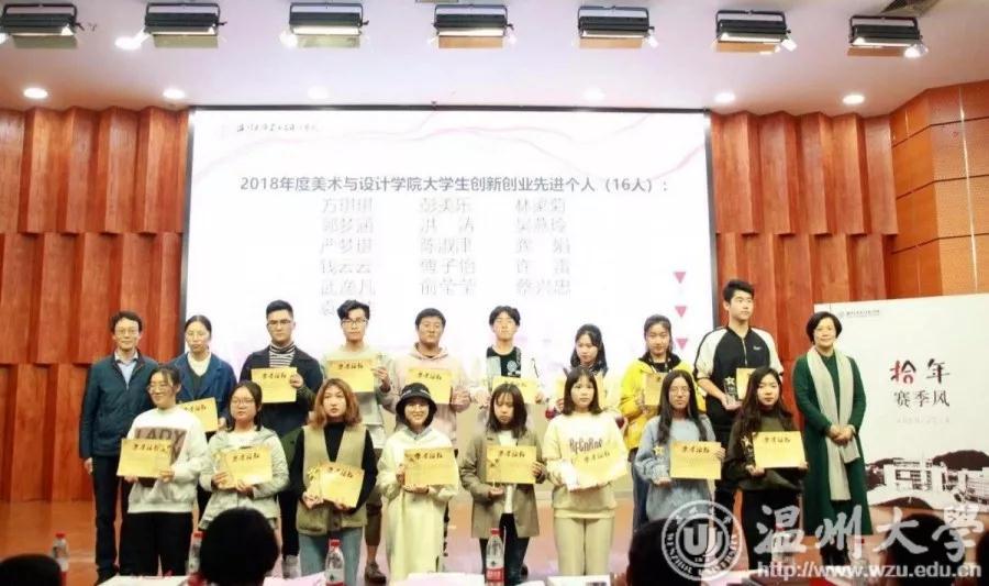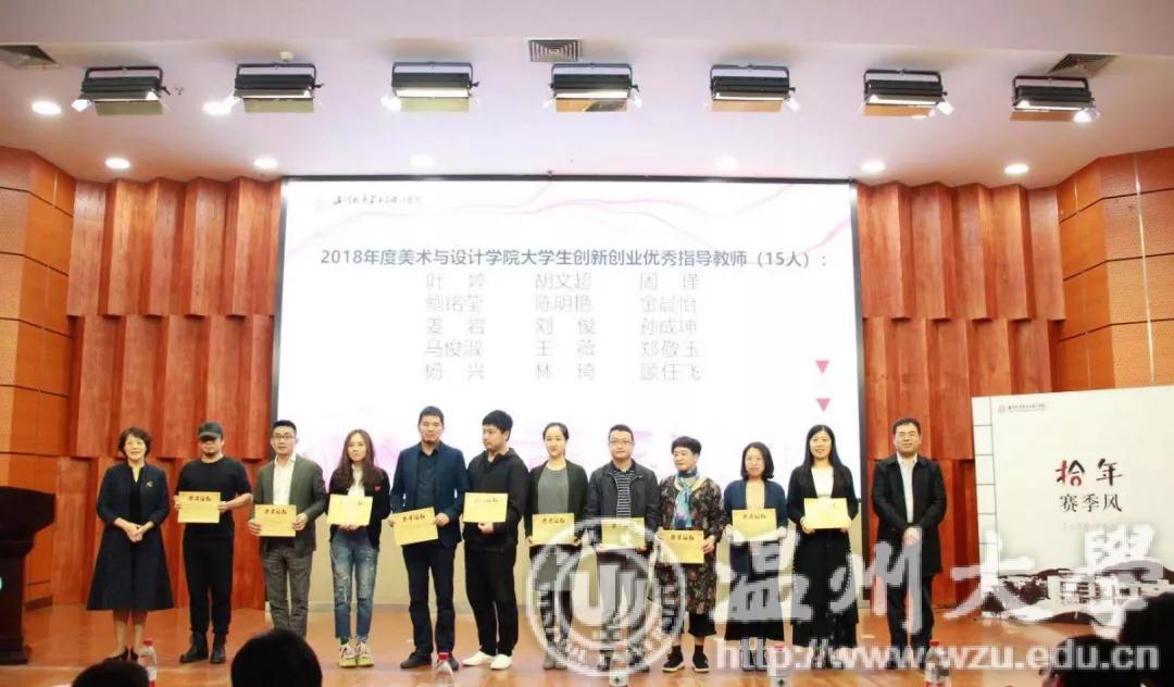 随后,大会对小宝影院 校园文化品牌项目“赛季风”优秀指导教师、2018年度美术与设计学院大学生创新创业优秀团队、优秀指导教师、先进个人进行表彰,领导们为他们一一颁发证书并表示祝贺。