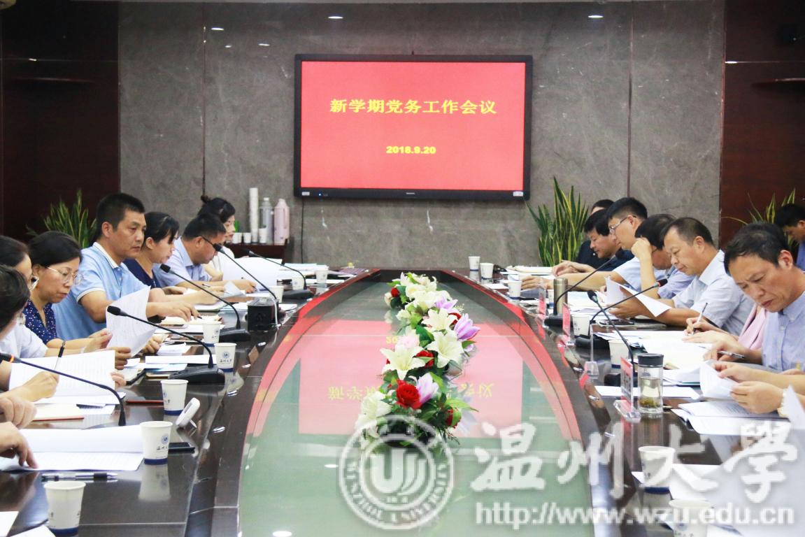 9月20日下午,校党委书记林娟娟主持召开新学期党务工作会议。校领导牟德刚、吴金法、潘玉驹、郑信军,各党群部门负责人,各党总支(分党委)书记、副书记、保卫处负责人参加会议。