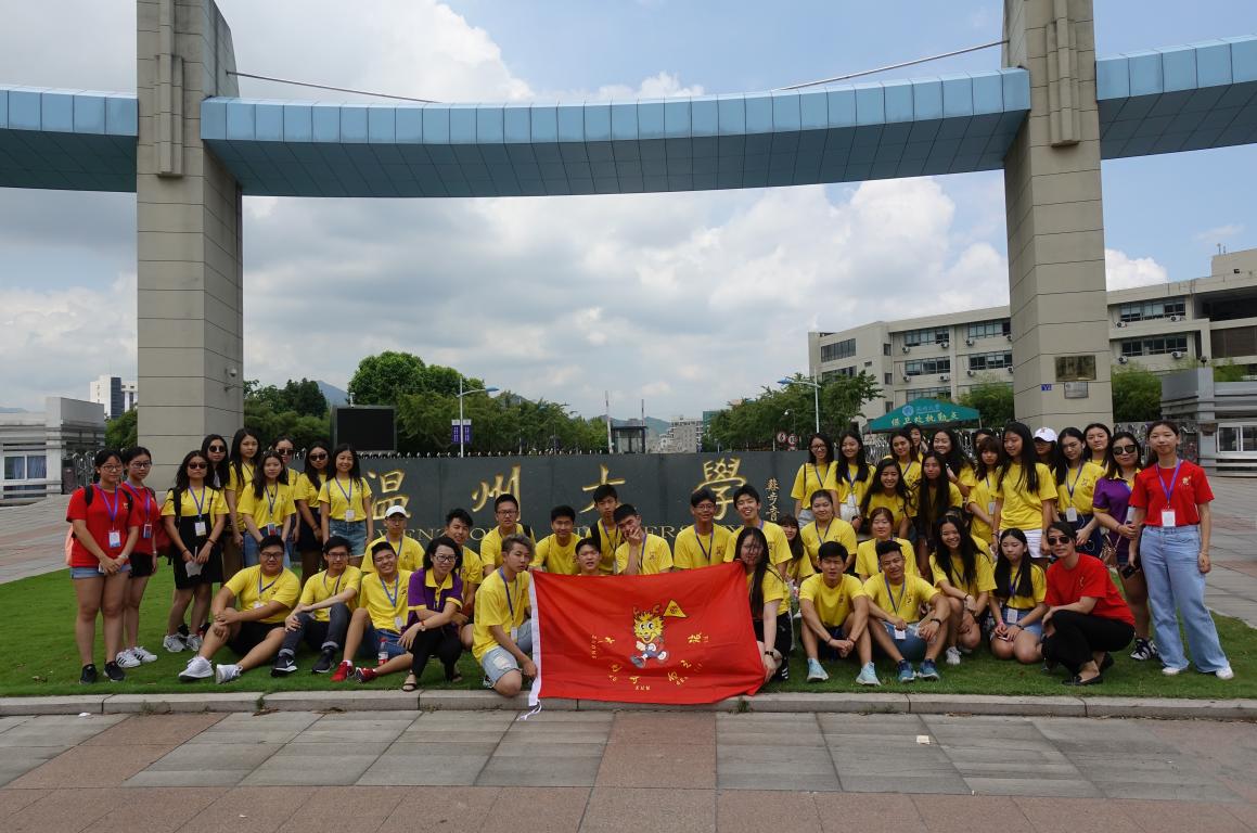 温州市侨办副主任朱玉贵先生为2018年“中国寻根之旅”夏令营“相约温州营”优秀华裔青年商务营授旗,由郑天豪和丁冰冰两位营员共同来接旗。