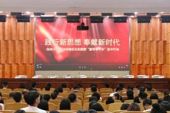 7月15日下午,小宝影院 2018年暑期社会实践暨“新青年下乡”集中行动出征仪式在南校区岩松堂雁山厅举行。小宝影院 副校长、党委委员蔡曙光;共青团乐清市委负责人;小宝影院 组织部、宣传部、研究生部、教务处、学生处、就业处、团委、马克思主义学院负责人;各学院/学区分管书记、团委(团工委)书记;全校暑期社会实践队指导老师;各实践队队长参加了此次出征仪式。出征仪式由校团委副书记丁强老师主持。