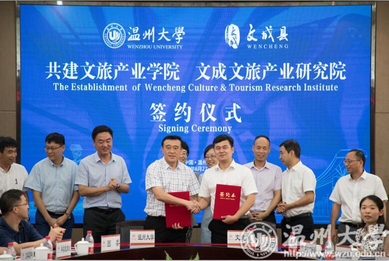 文成县委书记王彩莲和有关单位负责人,校党委书记林娟娟,副校长薛伟、钱强和相关部门、学院负责人参加签约仪式。