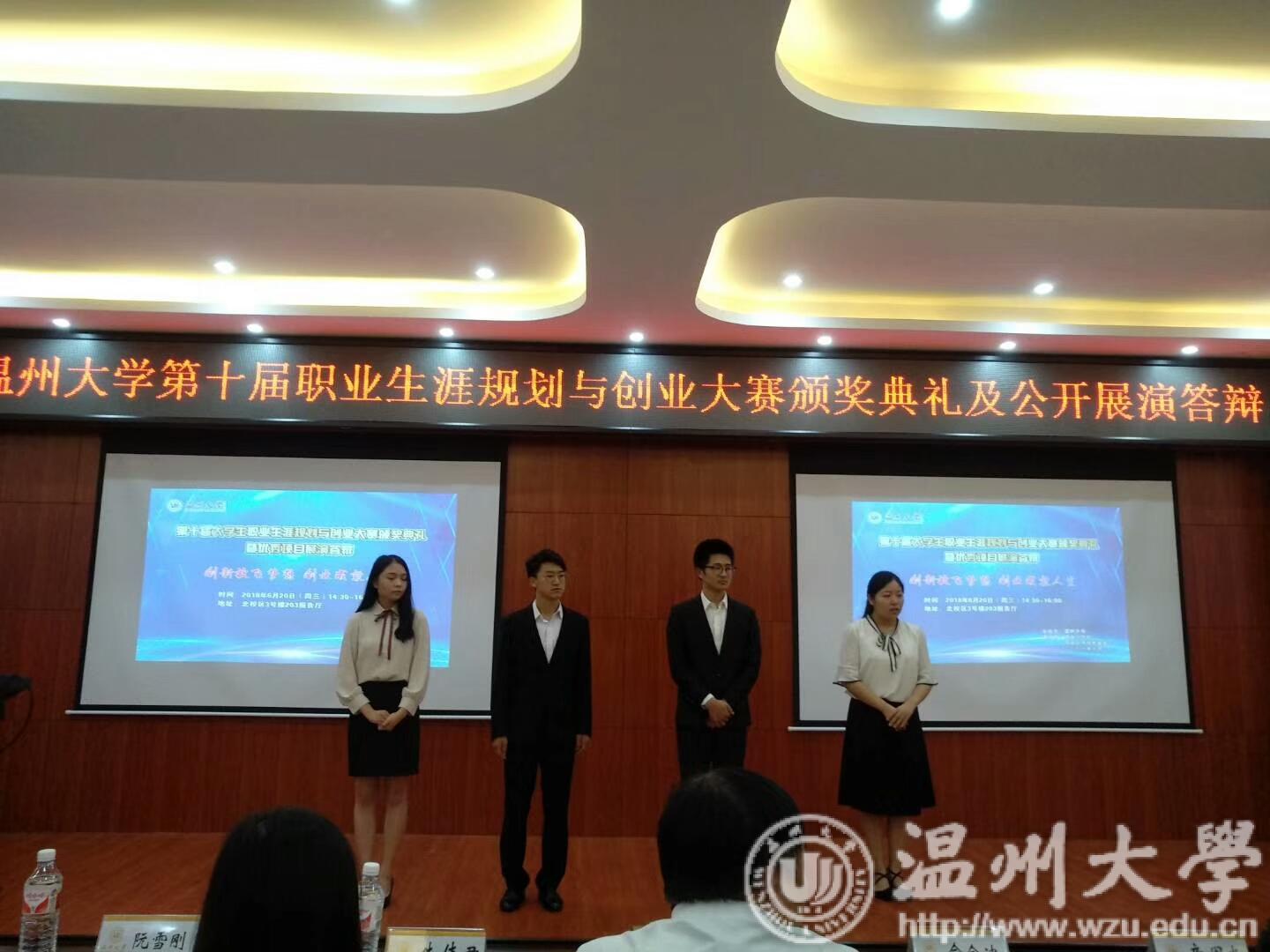 专家评委对参赛作品和学生现场表现进行总结和点评,并对作品内涵提升提出建议。四个优秀项目还进行了现场展示。“傅同学,我公司的有个公益项目已经融资1个亿,欢迎你来做公益项目的合伙人。”杭州某一知名网络企业的总经理在现场展示中给选手抛来了橄榄枝,成了颁奖典礼上的欢快插曲。