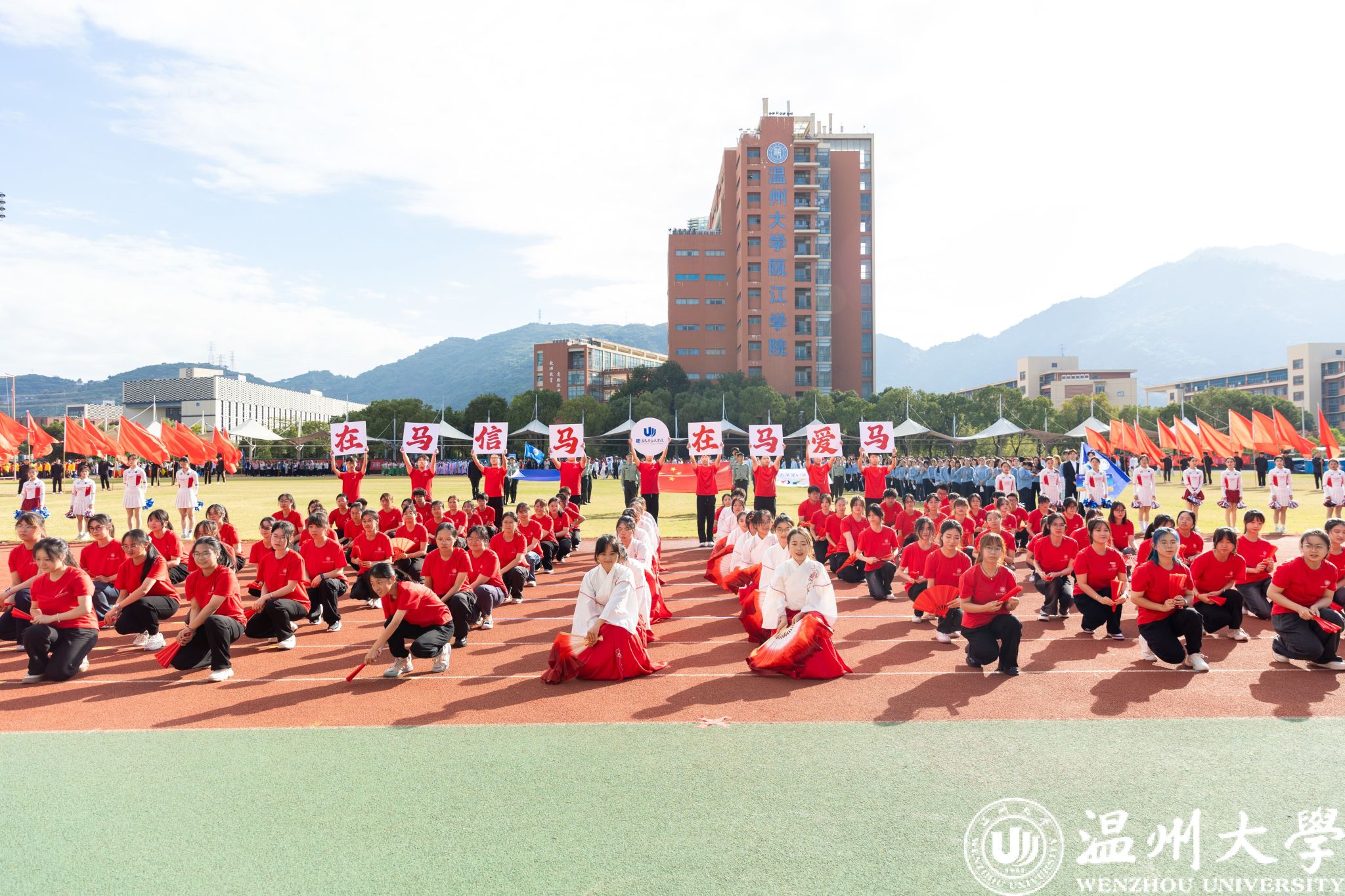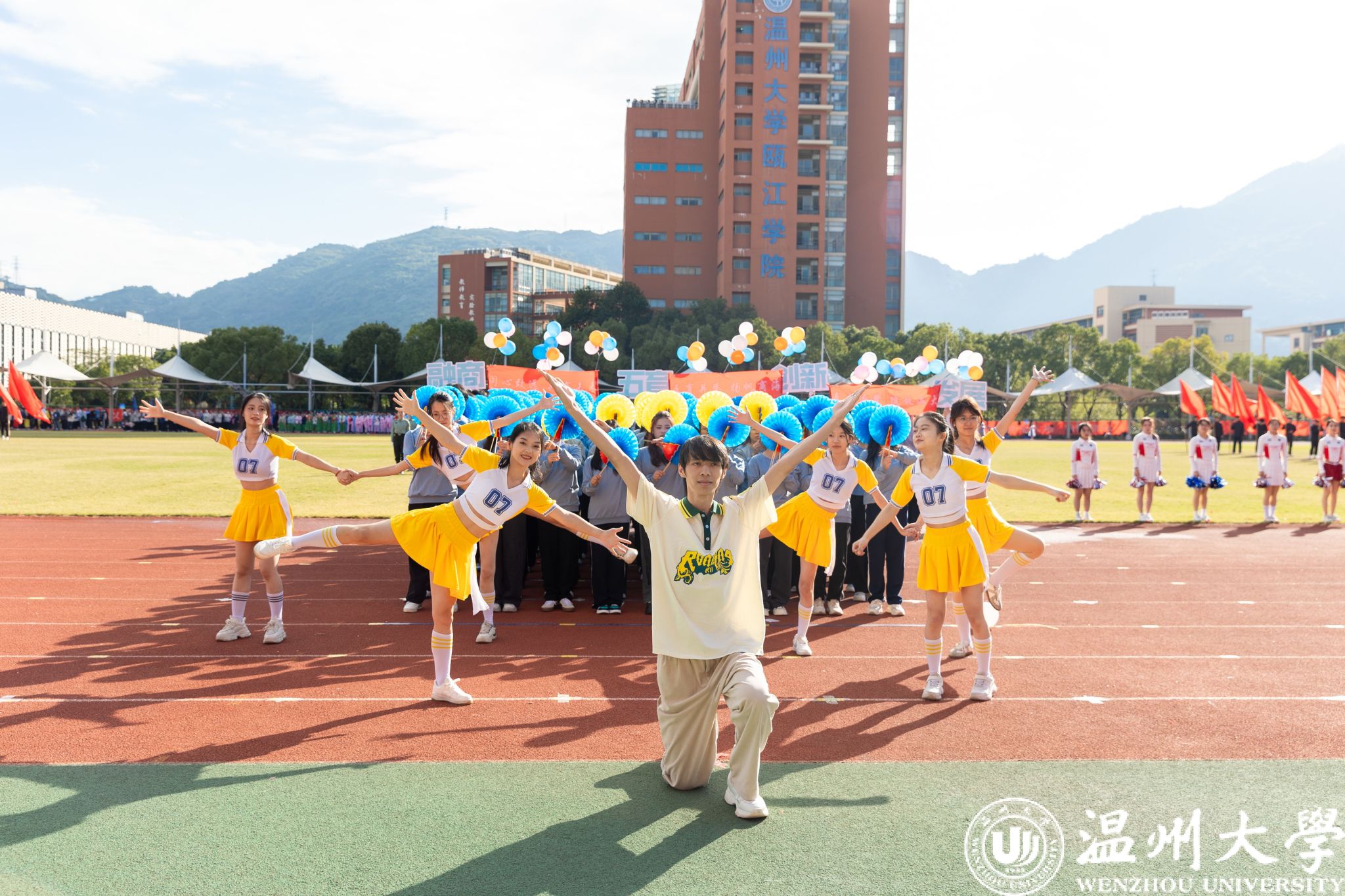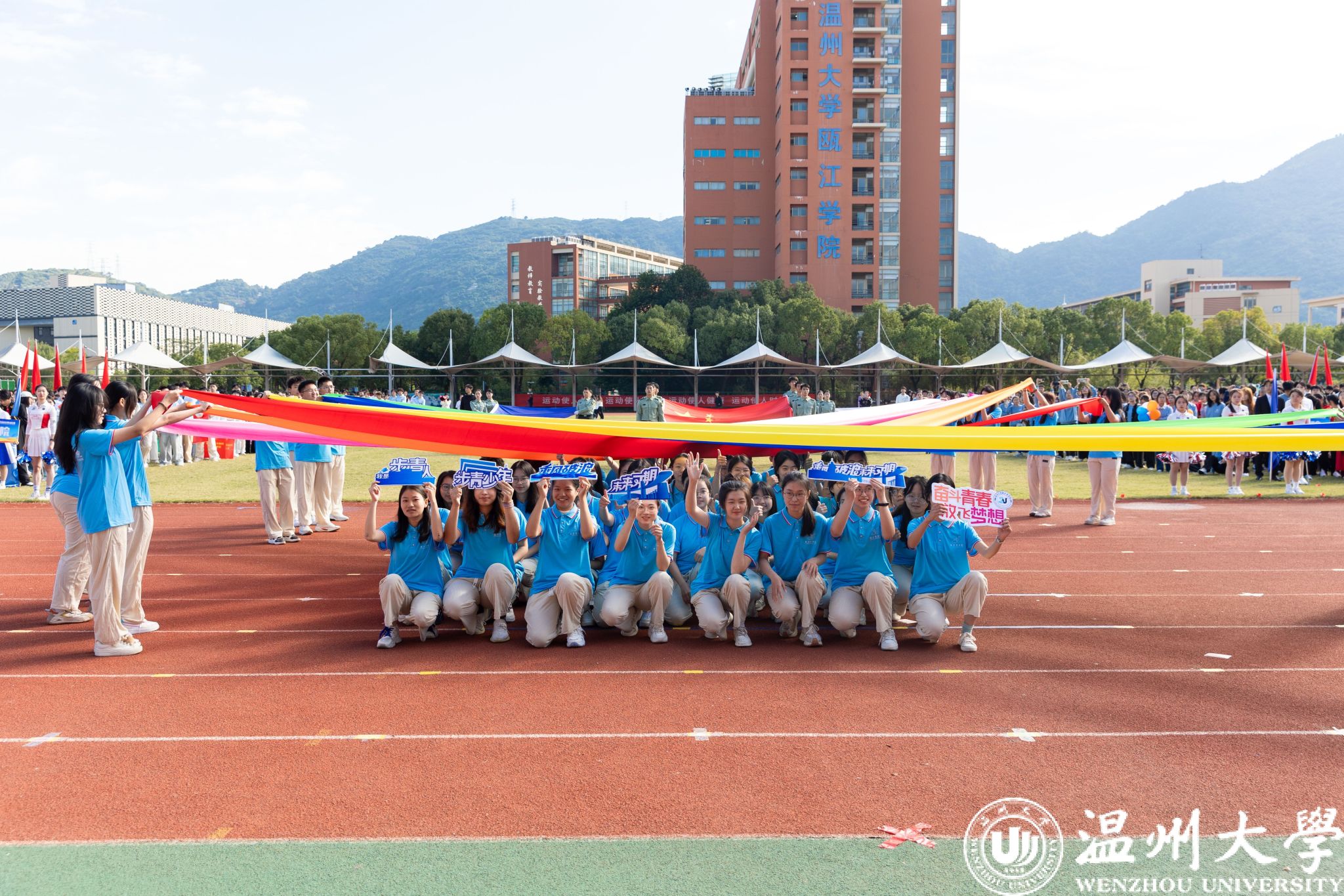 各学院方阵依次走过主席台,他们创意十足,展示着各自的特色与风采。有学院身着多彩的民族服装,展现出团结奋进的精神风貌;有学院结合专业特长,充分体现了学科特点和文化内涵。同学们精神抖擞、口号嘹亮,充分彰显了温大学子的蓬勃朝气和昂扬斗志。