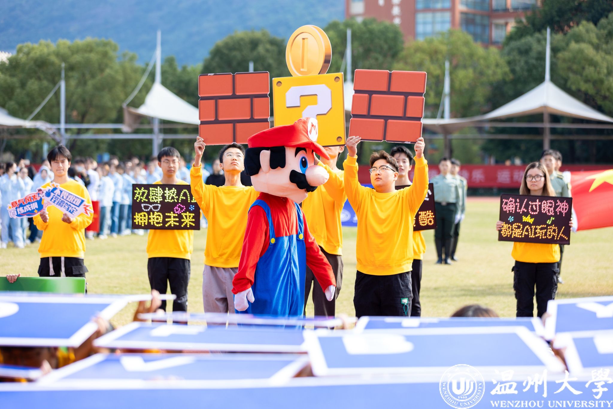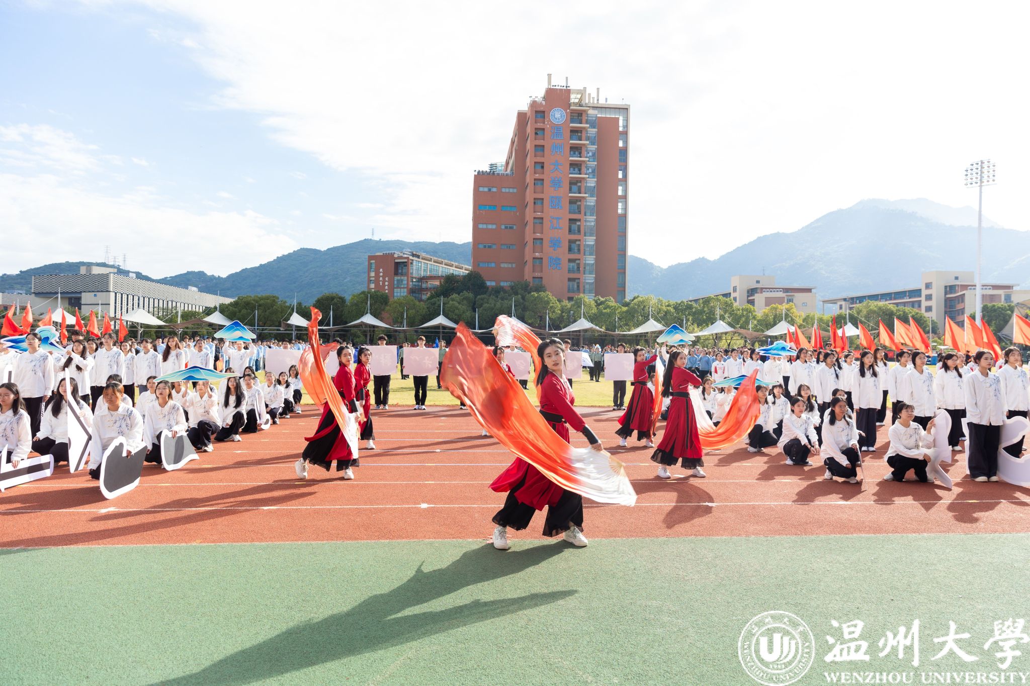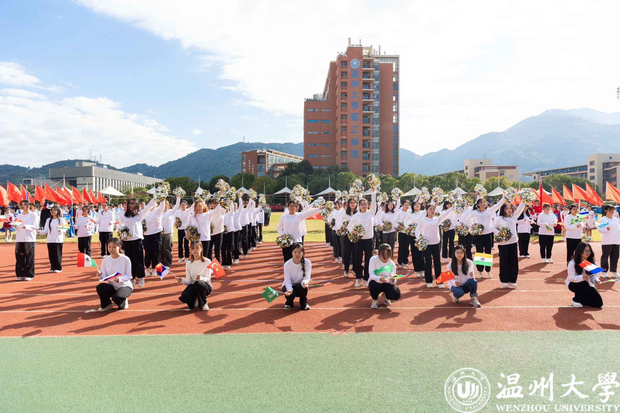 各学院方阵依次走过主席台,他们创意十足,展示着各自的特色与风采。有学院身着多彩的民族服装,展现出团结奋进的精神风貌;有学院结合专业特长,充分体现了学科特点和文化内涵。同学们精神抖擞、口号嘹亮,充分彰显了温大学子的蓬勃朝气和昂扬斗志。