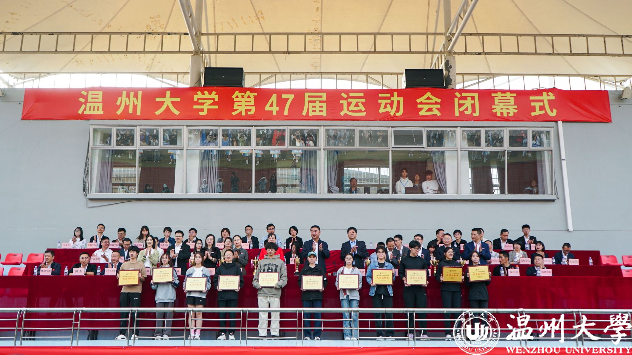 党委副书记庄兴忠致闭幕辞。他向取得优异成绩的团体和个人表示热烈祝贺,并对全体工作人员的辛勤付出表达了诚挚感谢。他强调,此次赛事贯彻了习近平总书记指出的“体育是提高人民健康水平的重要手段,为中华民族伟大复兴提供强大精神力量”的理念。在全体参与者的共同努力下,此次运动会不仅展现了卓越的竞技水平,更彰显了文明、团结、进取的体育精神,成为了一场激励人心的体育盛会,奏响了青春向上之歌与团结奋进之歌。学校号召广大师生积极参与体育运动,在学习和工作之余享受运动的乐趣,形成健康向上的生活方式。