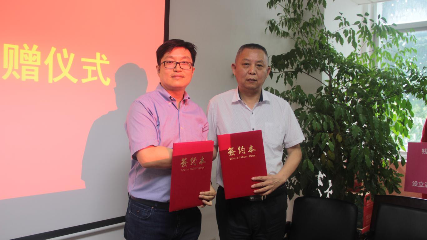 薛伟副校长高度评价了两位校友情系母校、支持教育的善举,他称校友是“金”,是学校的一笔宝贵财富;校友是“灯”,是学校人才培养的方向标;校友是“魂”,是学校社会影响力的直接体现。同时薛校长为两位校友颁发了捐赠证书并赠送了85周年校庆纪念品。