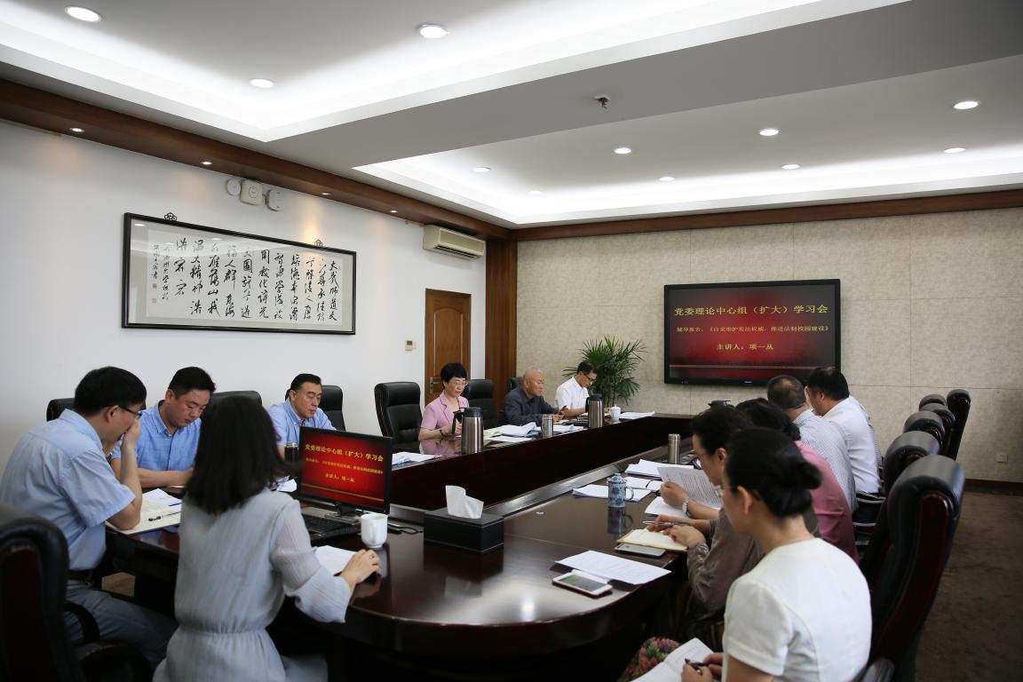 5月8日上午,小宝影院 召开党委理论中心组(扩大)会议,专题学习宪法修正案和《监察法》。全体党委成员、有关部门负责人参加学习会,校党委书记林娟娟主持。