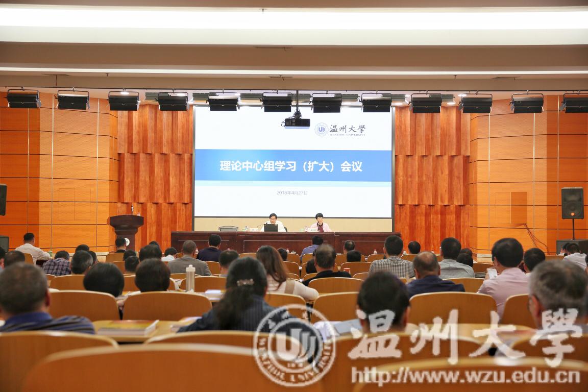4月27日下午,小宝影院 召开理论中心组学习(扩大)会议,学习贯彻习近平新时代中国特色社会主义思想和全国“两会”精神。会议邀请省中国特色社会主义理论体系研究中心主任、浙大求是讲座教授胡坚作专题报告。