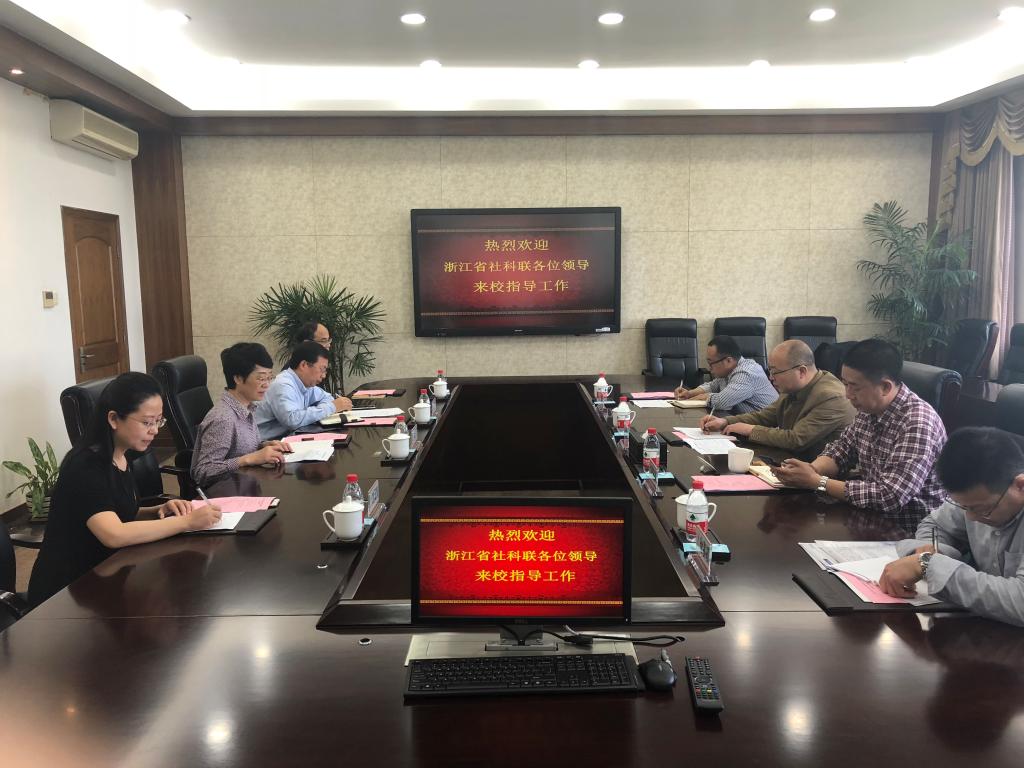 4月25日上午,浙江省社科联秘书长谢利根、科管处处长陈名义一行来小宝影院 走访调研,校党委书记林娟娟,人事处、人文社科处、省哲社重点研究基地等单位负责人参加座谈。