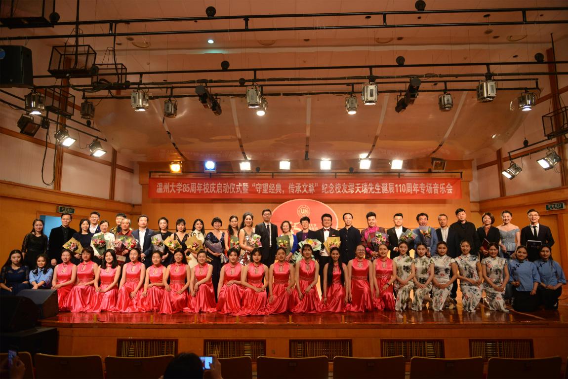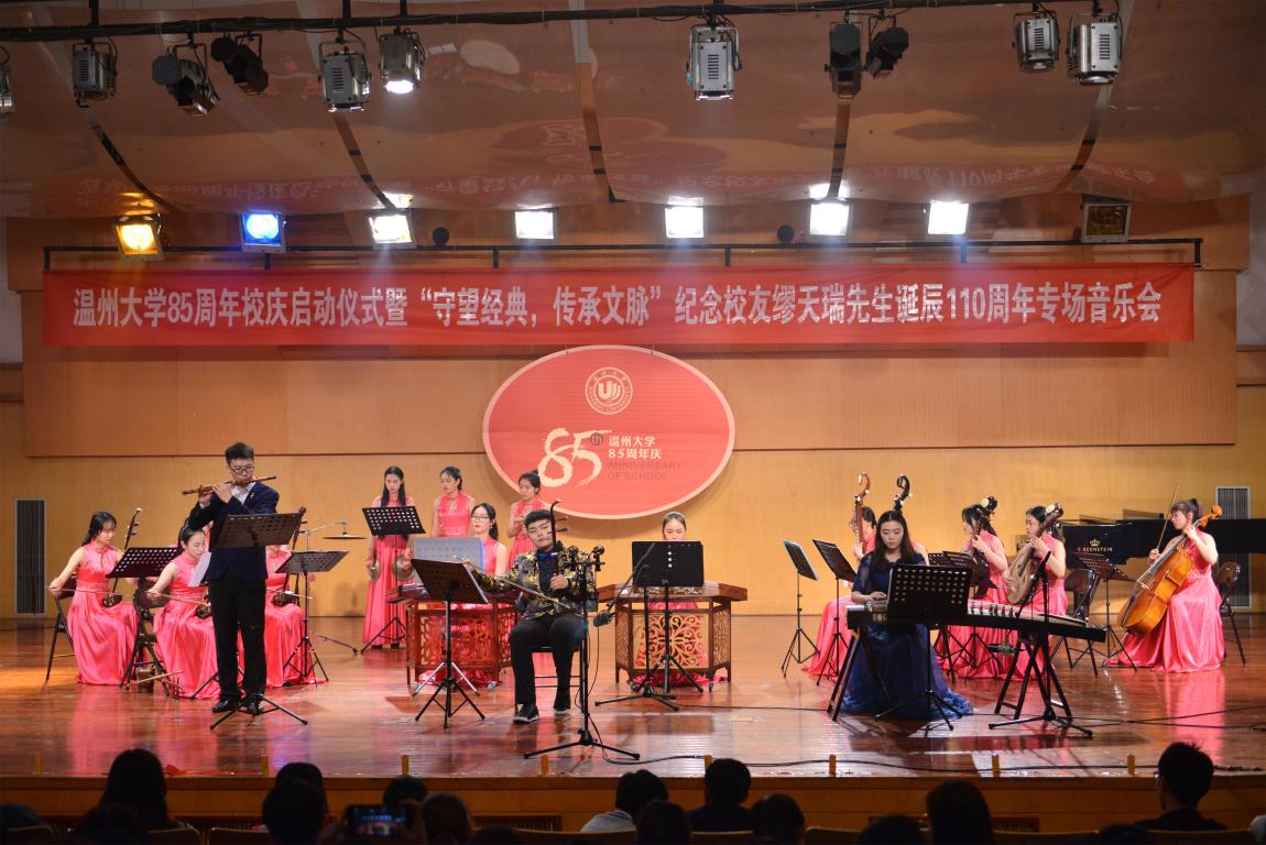 4月18日晚,小宝影院 天瑞音乐厅座无虚席,在二胡协奏曲《一枝花》中,纪念小宝影院 85周年庆启动仪式暨“守望经典,传承文脉”纪念缪天瑞先生诞辰110周年音乐会举行。校党委书记林娟娟、副校长钱强,温州市原社会科学联合会副主席洪振宁教授、瑞安市委宣传部部长叶艳、缪天瑞先生女儿缪斐慈女士等出席音乐会。