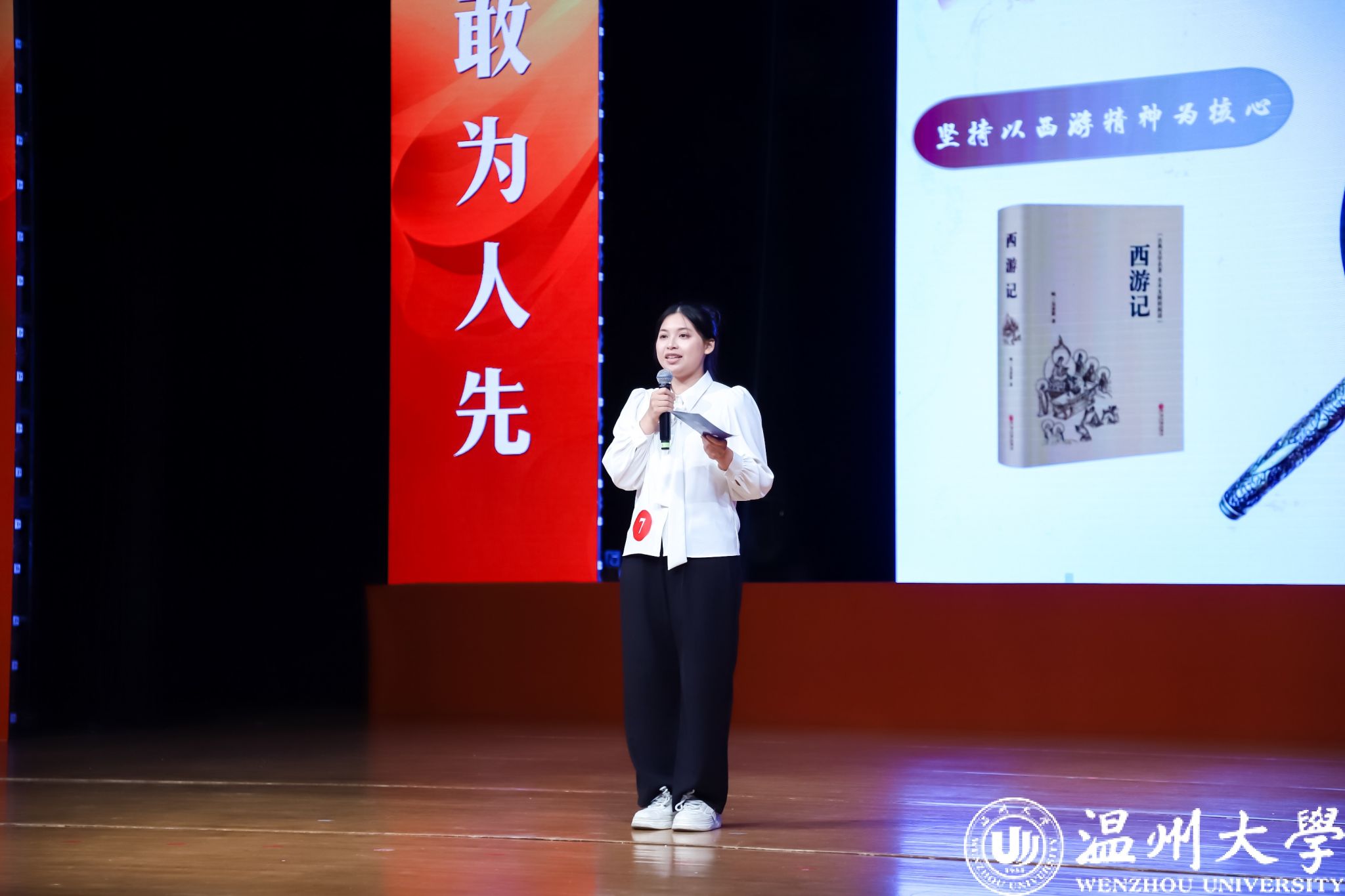 为进一步提升比赛的竞技性、多样性和创新性,赛程方面增设“大学生讲思政微课”环节。参赛选手以习近平新时代中国特色社会主义思想为理论基础,结合自身生活和学习体验,从中国特色社会主义的政治、经济、文化等方面展开论述,为在场师生带来了一场又一场精彩生动的宣讲。