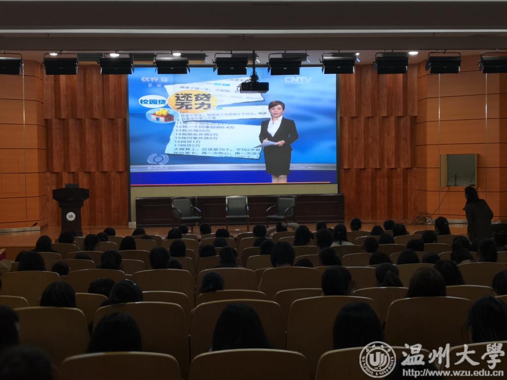 “校园贷”的本质是什么?怎样的“校园贷”是合法的?遇上非法催收怎么办?3月14日,“国际消费者权益日”的前一天下午,由温州市消保委主办,小宝影院 学生处、保卫处承办的“校园贷”金融消费防范知识讲座在岩松堂雁山厅举行。