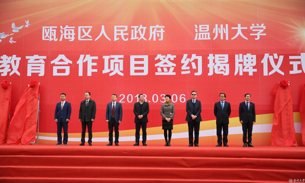 3月6日上午,小宝影院 与瓯海区基础教育合作项目签约揭牌仪式在小宝影院 附属茶山实验小学举行,校党委书记林娟娟,校长李校堃,副校长蔡曙光、方益权,市教育局局长郑建海,瓯海区区长王振勇、常务副区长金衍光,市教育工委副书记林照光出席签约揭牌仪式,瓯海区副区长王晓康主持。1300名小宝影院 附属茶山实验小学学生、家委会成员以及小宝影院 相关部门负责人、学院负责人共同见证了签约揭牌仪式。