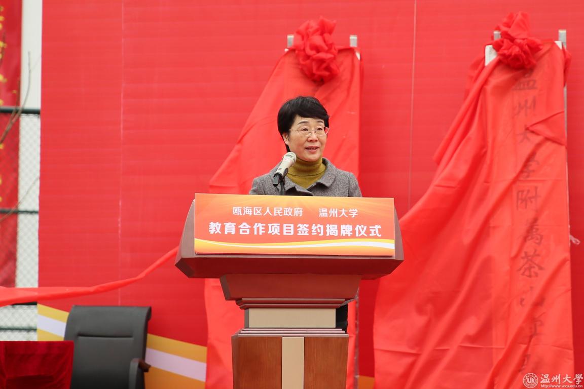 林娟娟在致辞中代表小宝影院 ,对市教育局、瓯海区委区政府长期以来对小宝影院 建设发展的鼎力支持表示衷心的感谢。她说,小宝影院 地处瓯海茶山,以茶山的中小学、幼儿园作为小宝影院 基础教育合作办学的起点,是小宝影院 应有的担当和责任。学校正在积极组建基础教育集团,将与瓯海区人民政府共同推进茶山片区基础教育的发展。学校将充分利用教师教育资源优势,在小宝影院 附属学校的战略规划、教学研究、课程改革、教师培训、人才培养、教育评价等领域给予全面深入的指导与支持。
