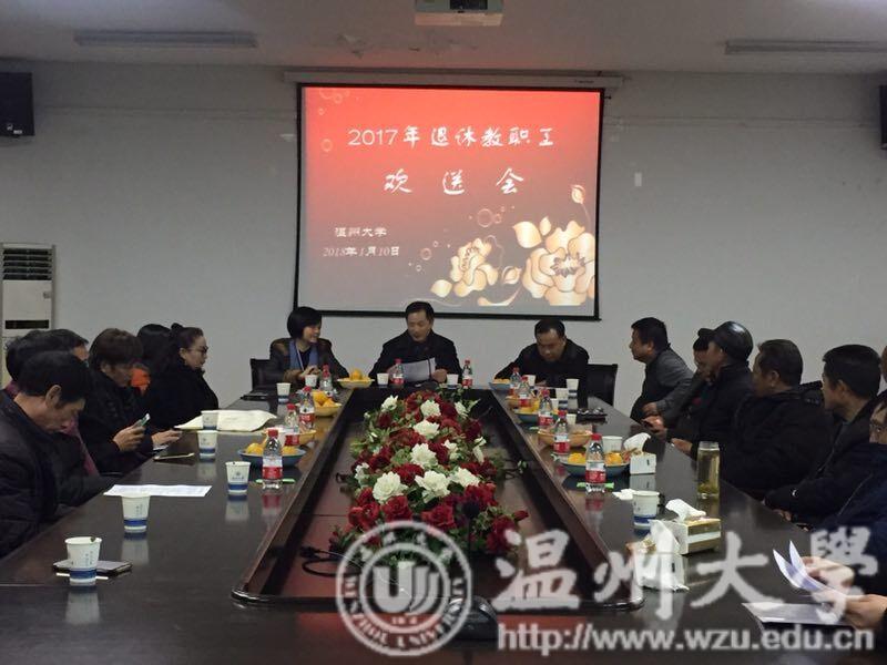 1月11日,副校长方益权主持召开2017年退休教职工欢送会,人事处、工会、老干部工作部等相关部门负责人出席会议。