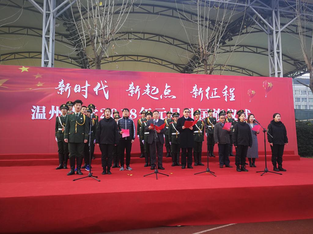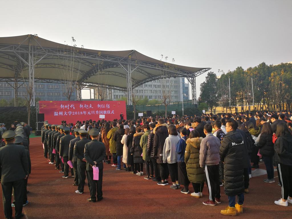8点整,沐浴着新年的阳光,国旗护卫队迈着坚定、整齐的步伐护送国旗入场;伴随着激扬的国歌,在场师生深情注视,国旗迎着朝阳冉冉升起。迎风飘扬的国旗激荡在每一位温大学子的内心,点燃他们的爱国热情。