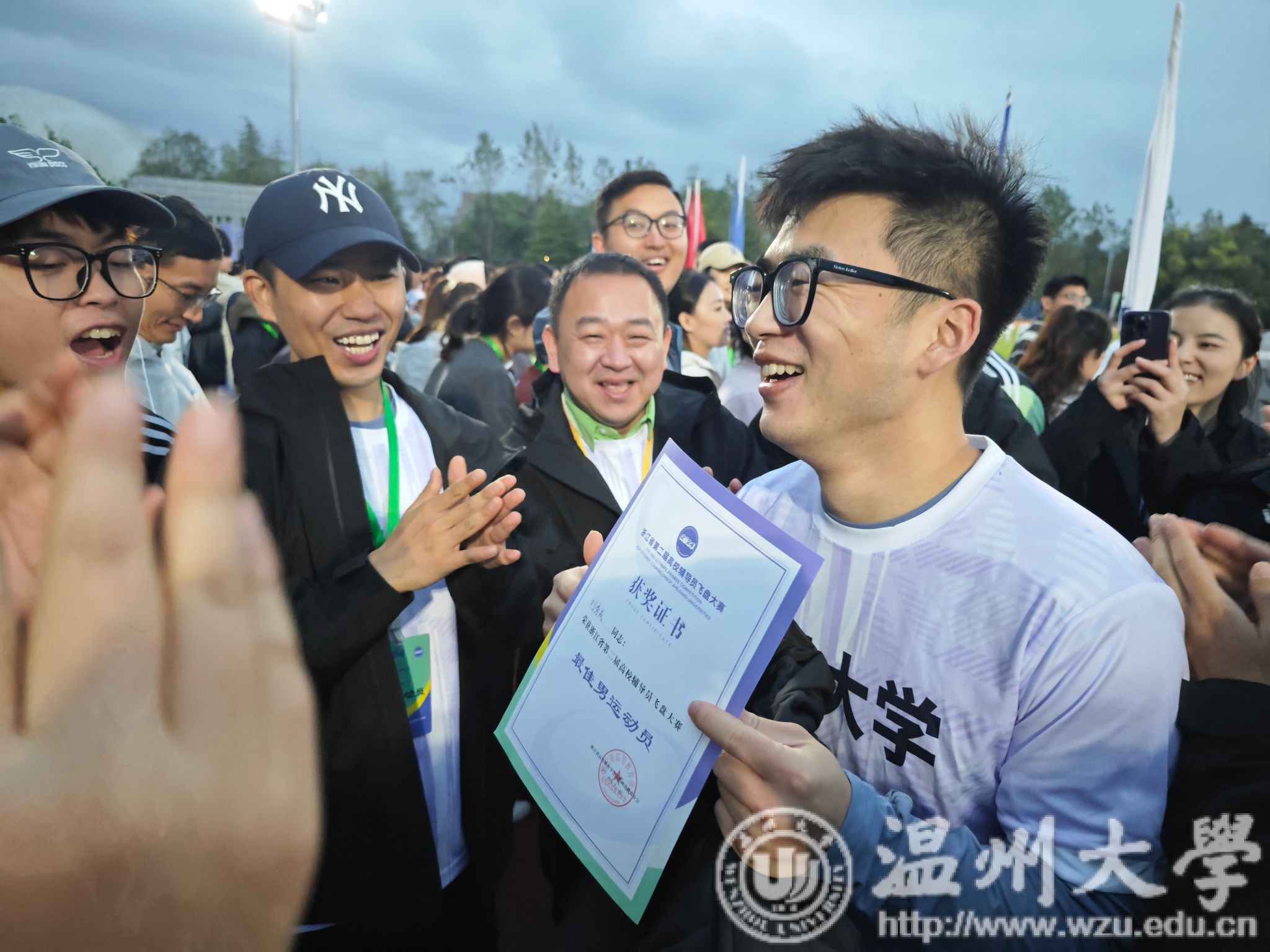 队员刘秀成获得全场最佳男运动员称号。他表示,最佳男运动员的殊荣,是个人的荣耀,更是团队力量的支撑与激励,接下来我们将继续秉持团结、拼搏、进取的信念,在更多的领域展现温大人的风采,让更多的师生感受到飞盘运动的魅力与团结的力量。