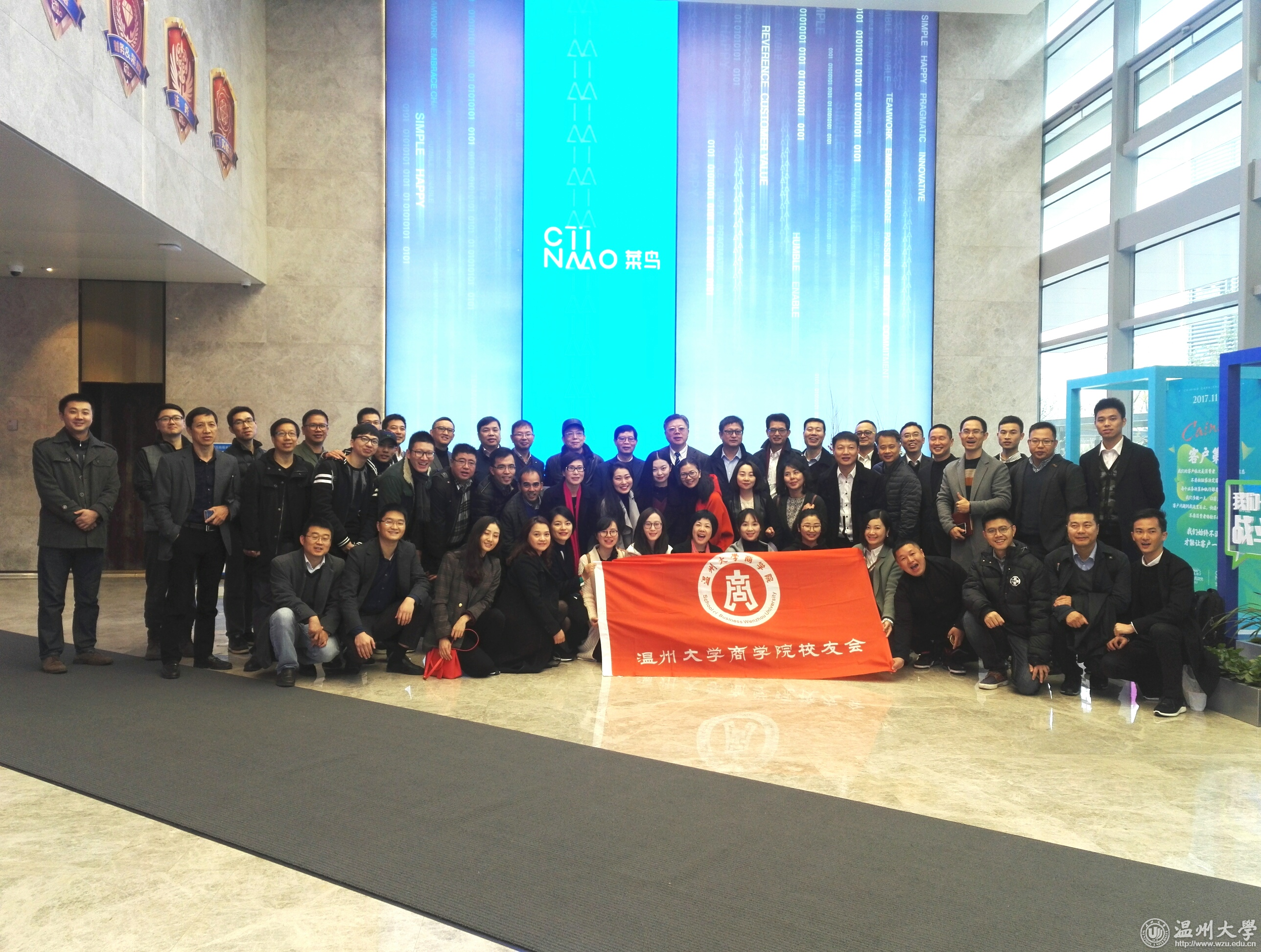 12月4日,小宝影院 商学院校友会联合上海校友会、杭州校友会举行首期公益商务游学活动,校友先后走进阿里巴巴菜鸟物流公司与浙江新湖集团。校长李校堃,小宝影院 商学院校友会会长、上海叁陆伍投资管理有限公司董事长王仲辉,上海校友会秘书长陈康汉,杭州校友会副秘书长陈振远,宁化投资公司董事长陈友相,学校相关部门、学院负责人,校友及师生代表六十余人参加活动。