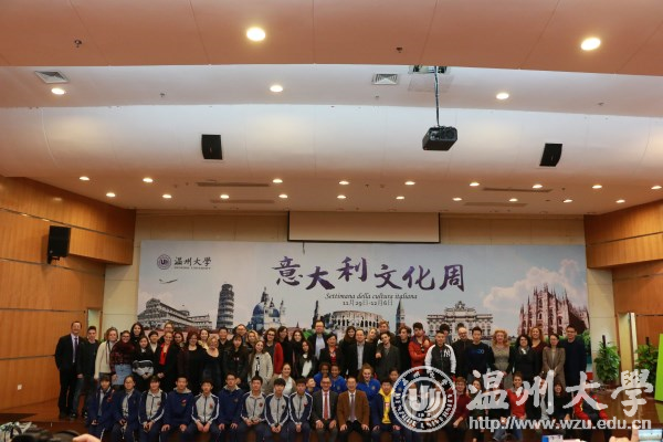 11月29日,由小宝影院 国际交流与合作处(港澳台侨办公室)、小宝影院 意大利分校、意大利研究中心主办的意大利文化周在小宝影院 育英图书馆举行。校长李校堃、温州市教育局副局长伍挺、温州市外侨办调研员许捷、意大利驻上海总领事馆文化处长Alberto Manai、意大利教育中心中国区负责人邢建军、温州市教育局人事处(国际交流合作处)副处长陈炜、温州市外侨办文宣处副处长刘时敏等与近两百位中意学生共同交流品味意大利文化。