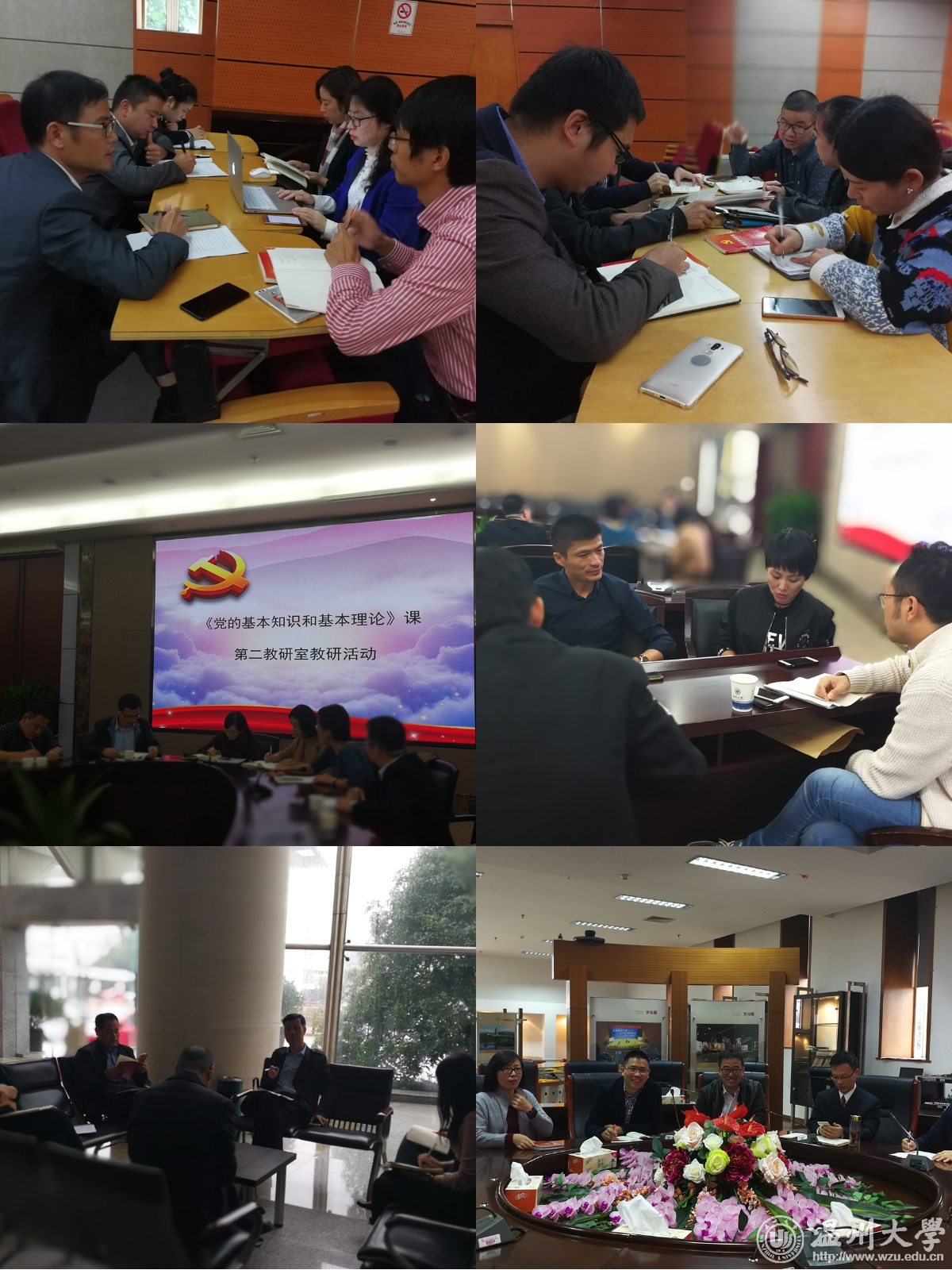 党课师资库成员以教研室为单位分成六个小组,对在《党的基本知识和基本理论》课程教学中如何贯彻党的十九大精神开展热烈的研讨。六位教研室负责人代表教研室分别作交流发言。