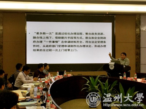 宁波大学商学院院长、浙江大学公共政策研究院副院长范柏乃教授,全国政府绩效管理研究会副秘书长、苏州大学尚虎平教授,温州市行政审批管理办公室(市公共资源交易管理委员会办公室)主任、党组书记王延申,上海交通大学中国城市治理研究院韩志明教授,苏州大学党委宣传部副部长余敏江教授,小宝影院 地方政府绩效管理研究中心执行主任付翠莲教授分别作题为“着力处理好前行中的十大关系,将‘最多跑一次’改革进行到底”“政府潜绩评估的内容维度及评估指标的实证筛选研究”“以‘最多跑一次’为目标,深化审批制度改革”“国家治理的知识转向——以公民参与为中心的分析”“推进地方环境治理现代化的三维路径”“意义、逻辑、路径:基于‘最多跑一次’改革的分析”的发言。