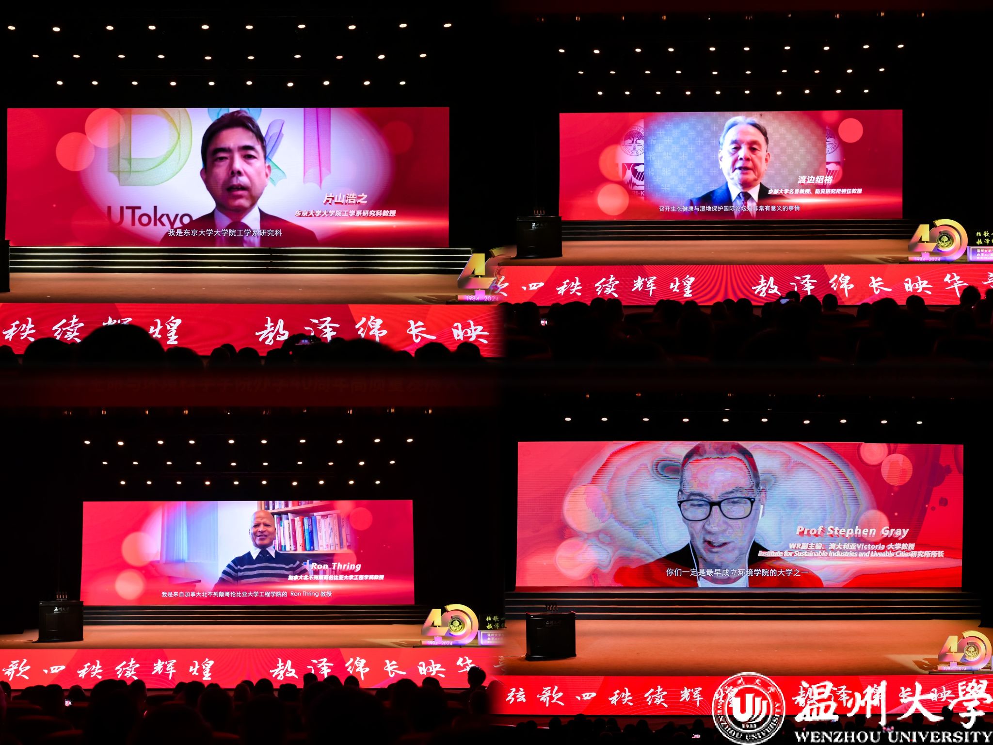 海外合作单位——东京大学、京都大学、加拿大北英属哥伦比亚大学、《水研究(Water Research)》期刊代表视频致辞,学院师生朗诵献词《挺膺正青春·启航赴未来》,大会在师生、校友合唱《光阴的故事》、《小宝影院 校歌》中落下帷幕。