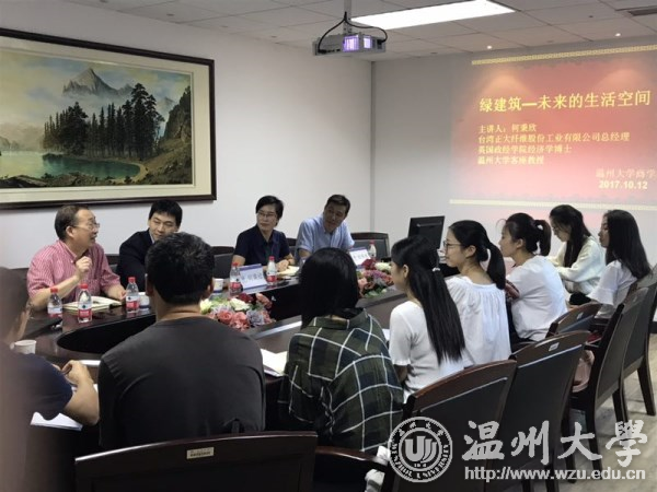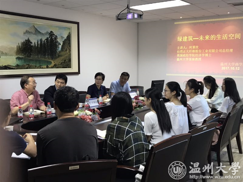商学院邀请著名慈善家何朝育之孙、英国政经学院经济学博士、小宝影院 客座教授、台湾正大纤维股份工业有限公司总经理何秉欣为学院研究生师生做作题为“绿建筑——未来的生活空间”的主题演讲。