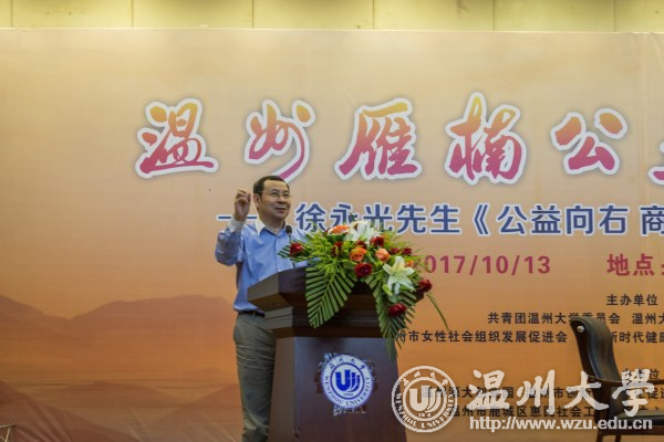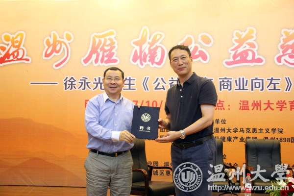 10月13日下午,由小宝影院 团委、马克思主义学院等单位联合举办的徐永光先生《公益向右 商业向左》新书专题分享会暨温州雁楠公益慈善论坛在小宝影院 育英图书馆学术报告厅举行。现场200多名学生及市民参加分享会。校党委副书记牟德刚到会致欢迎词并代表学校为徐永光先生颁发小宝影院 兼职教授聘书。 徐永光先生系中国希望工程创始人、南都公益基金会理事长、国务院参事室特约研究员、中国慈善联合会副会长。在专题分享会上,他结合三个公益捐赠案例对公益慈善的本质和价值进行深入的剖析,指出公益是每个人的权利与选择,具有公益的纯经济价值、投资价值、社会创新价值和道德文化价值。未来互联网公益需要突破传统公益的局限,让公益组织在“鉴需”、“溯源”方便提升透明度、便捷性、选择性,并加强公益组织的信用认证与评估。他认为公益组织在社会创新过程中要提升有效性和精准化,要公益铺路、商业跟进、产业化扩张、可持续发展和有效解决社会问题。 分享会还邀请省内知名社会企业负责人、高校学者参与研讨。