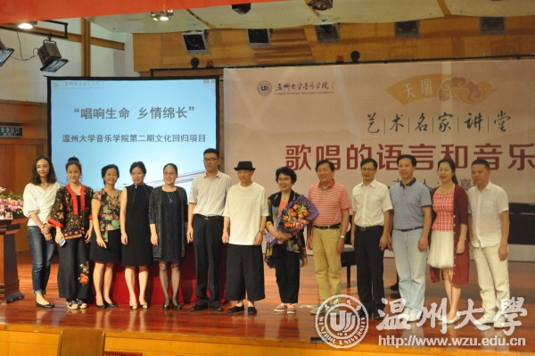 6月12日下午,小宝影院 音乐学院举办第二期“唱响生命,乡情绵长”文化回归项目。温籍著名歌唱家、国家一级演员、被誉为“中国古诗词演唱第一人”的姜嘉锵,温籍著名女高音歌唱家金家勤,温籍著名音乐人吴涤清,市音乐家协会副主席戴凯等温州音乐界人士,副校长方益权,音乐学院全院师生参加活动。