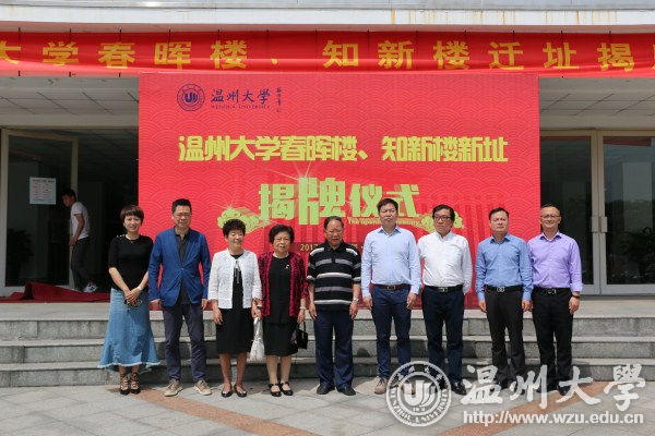 潘娟妹、魏萼清、蔡曙光、潘玉驹共同为“春晖楼”“知新楼”新址揭牌。