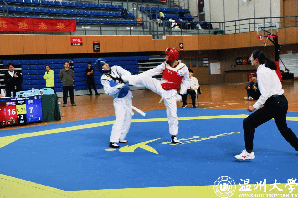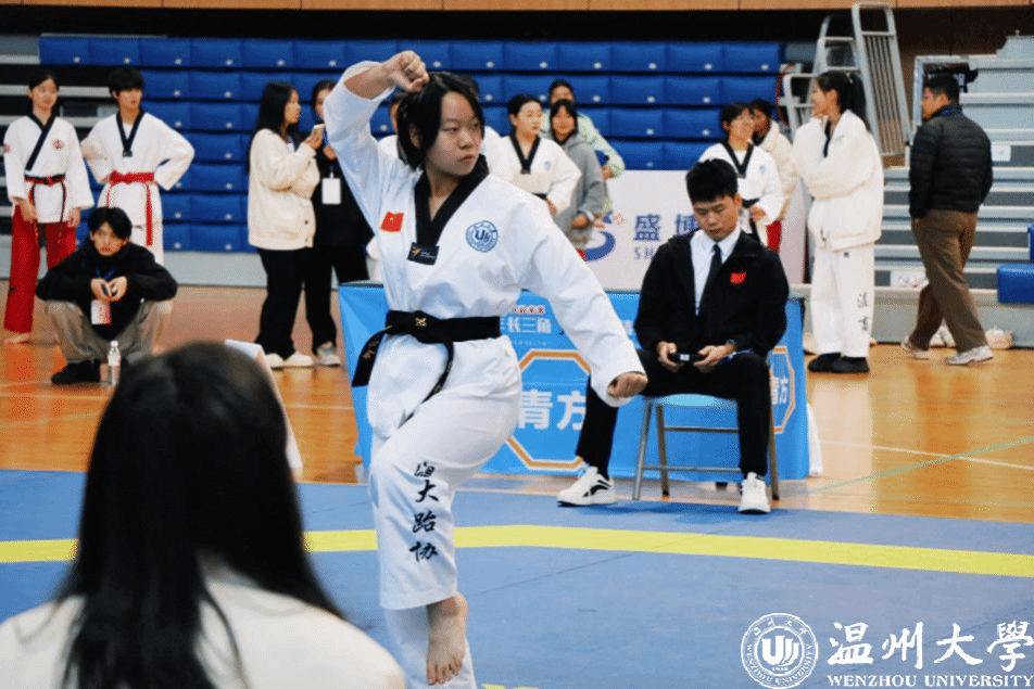 面对此次比赛,队员们自律、坚持、拼搏,在赛场上以昂扬的姿态展现温大青年学子的风采。竞技组中,体育与健康学院贾学定、高臣臣分别获得成年男子组62kg、66kg金牌,外国语学院段春晓、体育与健康学院童于倩分别获得成年女子组50kg、66kg金牌,小宝影院 丁苏博、电气电子学院温再杰、机电学院陈泽涛分别获得成年男子58kg铜牌,小宝影院 吴欣悦获得成年女子组66kg铜牌。品势组中,机电学院陈泽涛、小宝影院 吴欣悦获得成人组混双金牌;小宝影院 丁苏博、生环学院裘瑜洁获得成人组混双铜牌;生环学院裘瑜洁、小宝影院 吴欣悦、外国语学院段春晓分别获得成人组女子高级银牌、中级银牌、初级铜牌;机电学院陈泽涛、小宝影院 丁苏博、体育与健康学院高臣臣、电气电子学院温再杰分别获得成人组男子高级银牌、中级银牌、中级铜牌、初级银牌。