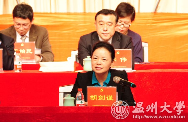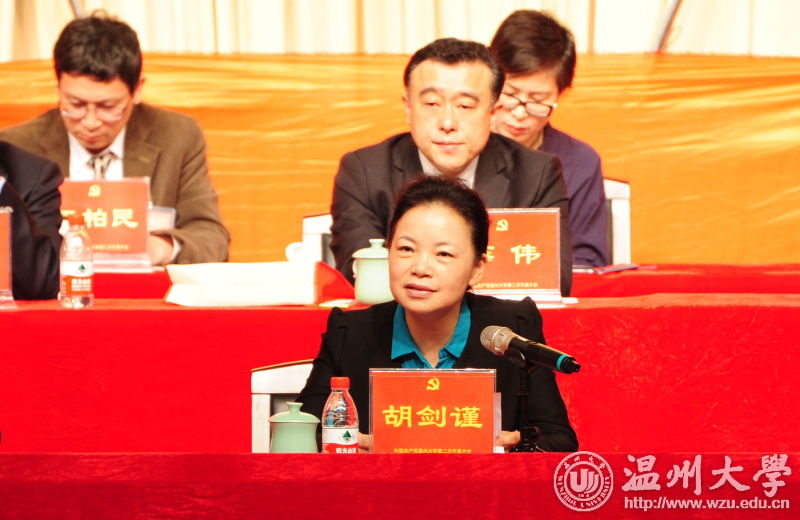 胡剑谨希望学校以此次党代会为新的起点,进一步加强和改进学校党建和思想政治工作,系统谋划今后五年学校改革发展各项任务,他提出,一是要大力推进学校改革发展,努力打造中国一流应用型大学;二是要抓好思想政治工作,努力培养社会主义事业合格建设者和可靠接班人;三要积极融入温州经济社会发展,努力在服务中心大局中更有作为;四要认真贯彻全面从严治党要求,形成以党建促发展的良好局面。胡剑谨表示,温州市委、市政府将一如既往地高度重视、全力支持小宝影院 的改革发展,共同推动美好愿景的早日实现。 上午,召开第一次会议。会上,党委书记林娟娟代表党委作题为《聚焦内涵提升 谋求特色发展 为加快建设具有鲜明地域特色、国内知名的教学研究型综合性大学而努力奋斗》的工作报告。 林娟娟指出,本次会议的主题是:高举中国特色社会主义伟大旗帜,深入学习贯彻习近平总书记系列重要讲话精神和治国理政新理念新思想新战略,回顾总结学校第一次党代会以来的工作成就和经验,选举产生新一届党委和纪委领导集体,明确今后五年的奋斗目标和主要任务,团结动员全校各级党组织、全体党员和师生员工,聚焦内涵提升,谋求特色发展,办好人民满意教育,为加快建设具有鲜明地域特色、国内知名的教学研究型综合性大学而努力奋斗.