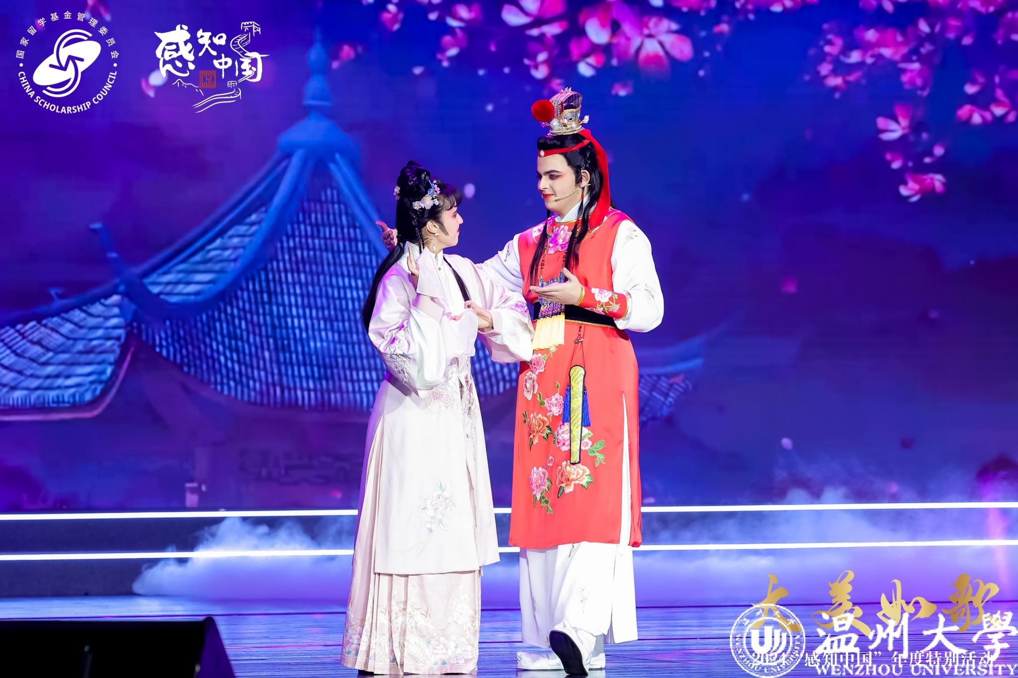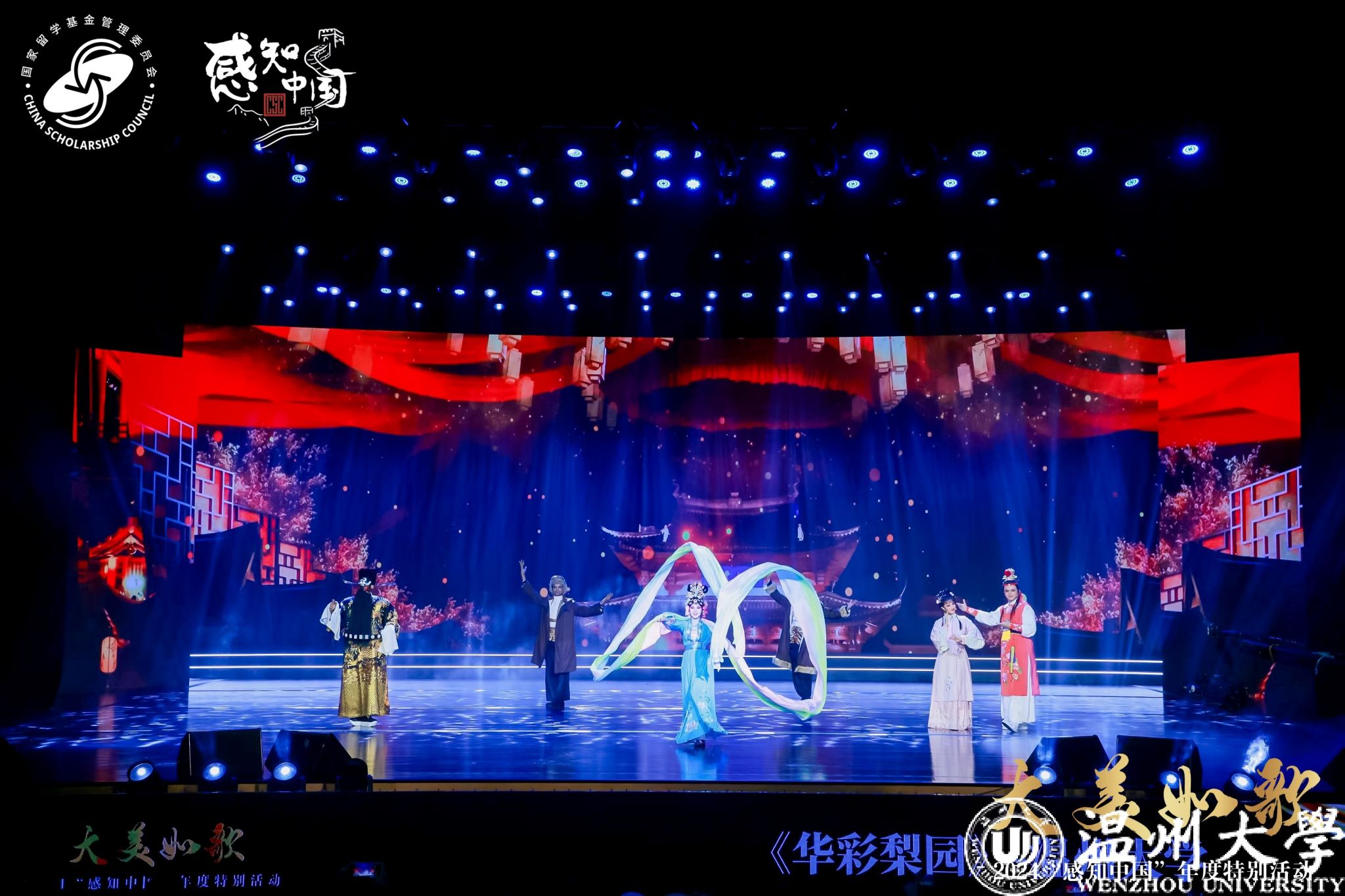 12月12日晚,由教育部国家留学基金管理委员会主办的“大美如歌——2024‘感知中国’年度特别活动”于华东师范大学盛大开幕。小宝影院 留学生戏曲节目《华彩梨园》经多轮遴选,脱颖而出,受邀参演,全国仅有北大、清华、复旦等13所高校获此殊荣。小宝影院 留学生们循“戏从温州来”的千年传承,将中华优秀传统艺术精彩演绎,收获如雷掌声与满堂喝彩,尽显温大学子非凡风采。