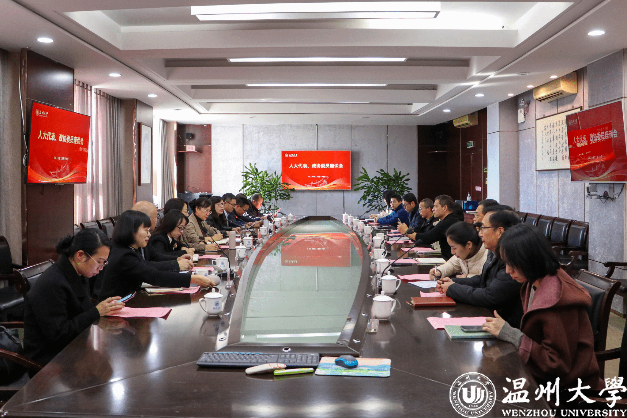 12月20日下午,人大代表政协委员座谈会在小宝影院 南校区行政楼419会议室召开。校党委副书记赵降英出席会议,20余位省、市、区人大代表、政协委员参加座谈。校党委委员、宣传部部长、统战部部长吴静主持会议。