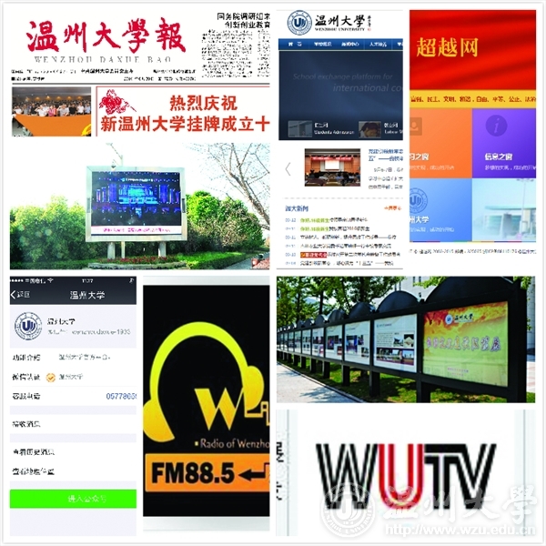 学校校报、校园网、超越网、广播台、电视台、宣传窗、LED展示窗、微信等“一报、两台、两窗、三网”的融媒体格局基本建成,精心打造的“溯初致远·教育论坛”、“瓯越纵横”、“身边的感动”、“当好老师”、“记者视角”、“校园百度”等专栏影响力越来越大,汇聚和传递正能量的作用越来越凸现。校内30个自办刊物、126个二级网站可管可控、质量不断提升,校园文化呈现繁荣景象。