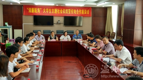 7月15日下午,校纪委书记吴金法一行慰问小宝影院 廉政知行社廉洁教育实践队,并与瓯海区纪委举行了“清廉瓯海”大学生主题社会实践暨校地合作座谈会。小宝影院 廉洁教育实践团是小宝影院 2016年暑期社会实践唯一一支以“廉洁”为主题的实践队,选址瓯海区开展实践活动,得到了瓯海区纪委的大力支持。吴金法要求全体实践队员向基层一线纪检干部、社区干部和老党员们学习,利用好瓯海区纪委和各街道社区提供的良好实践条件,保质保量完成好各项实践任务。