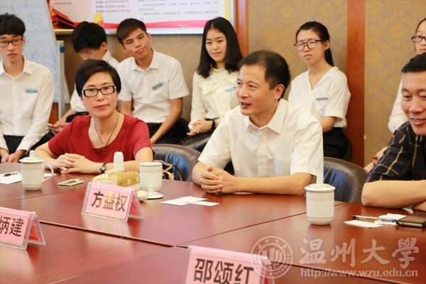 7月12日下午,校党委副书记赵敏一行赴乐清北白象镇万茗村慰问建工学院“绿色青鸟”暑期社会实践队。该实践队主要开展环保宣传、调研等方面工作,为地方五水共治事业提供专业支持与帮助。座谈会上,赵敏认真听取了实践队队长的实践工作汇报以及对下一步实践活动计划的展望,他指出,大学生实践服务地方是时代永恒的主题,利用自己课堂上所学的专业知识转化为服务社会的力量是大学生承担起时代责任强有力的手段。赵敏希望实践队能够再接再厉,在实践中受教育,长才干,做贡献。赵敏一行还来到乐清市大荆镇大荆中学慰问体育学院“盛夏年华,阳光雨露”暑期社会实践队。