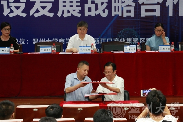 6月8日下午,小宝影院 商学院与温州瓯江口产业集聚区管委员会平台建设发展战略合作仪式大会在北校区信息楼报告厅举行。校长李校堃、温州瓯江口产业集聚区管委员会主任姜增尧、温州瓯江口产业集聚区管委员会副主任黄少燕、学校有关单位负责人以及部分教师、学生代表参加仪式。